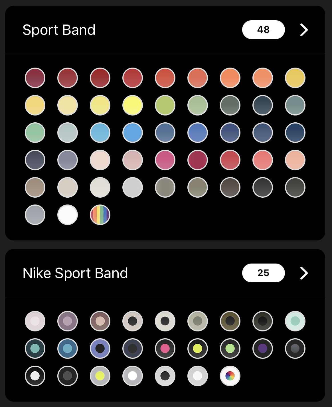 I’m missing Celestial & Light Violet. That may change soon, though!i thought you had all of the nike sport bands, arent there 27?
