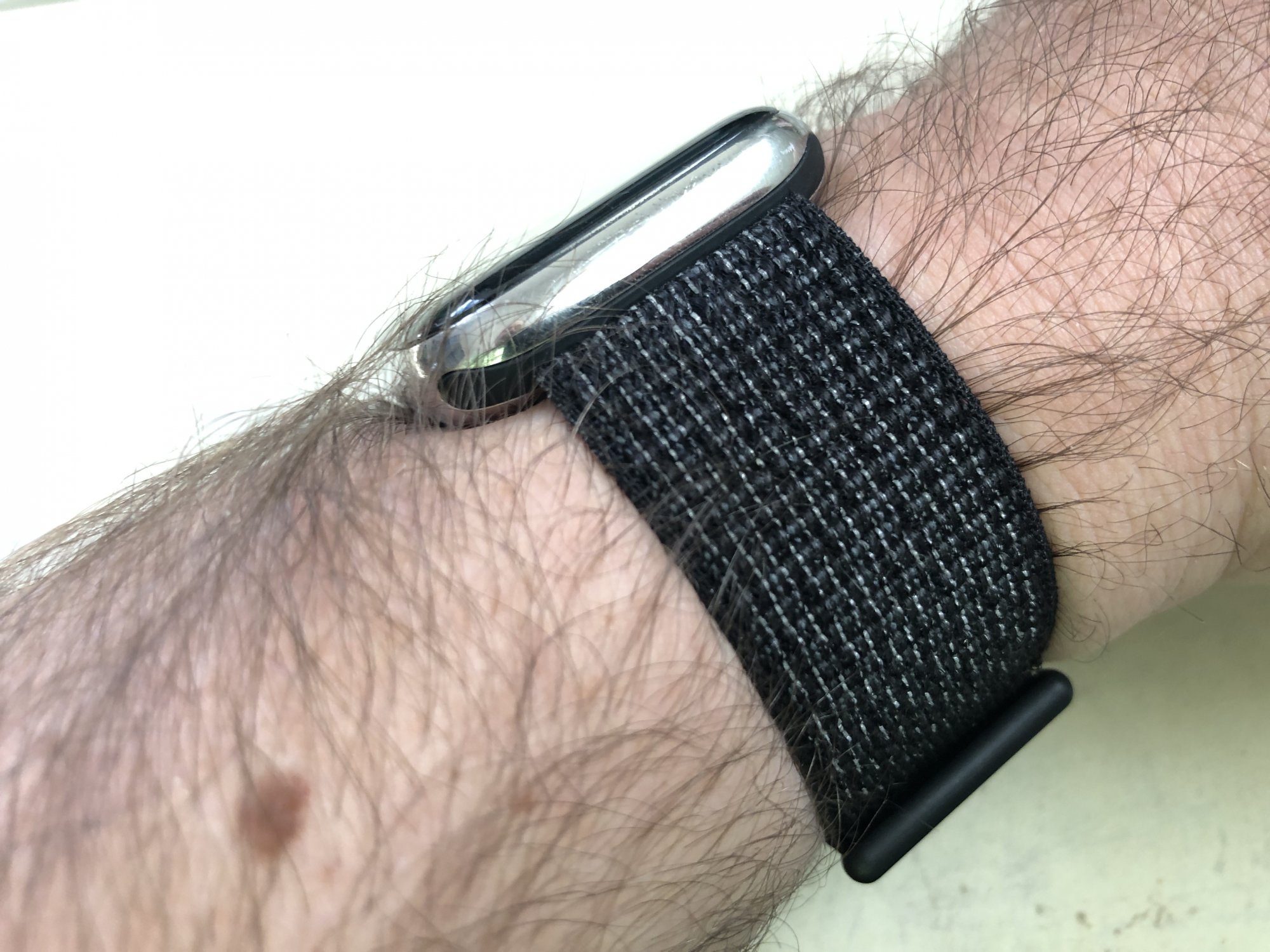 Are you being bandist?Today’s band — Black Nike sport loop. I always find myself wondering why all the other Nike bands have fancy, airy names — heck, even this band’s simple opposite is “Summit White” — but this band is just plain old “Black.”