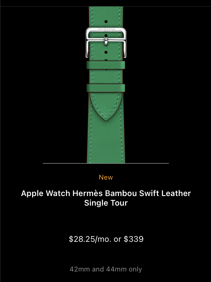 Looks like 44mm Space Black Stainless Steel is only available in Hermès now. So $1299. Not a fan of any of the bands either.