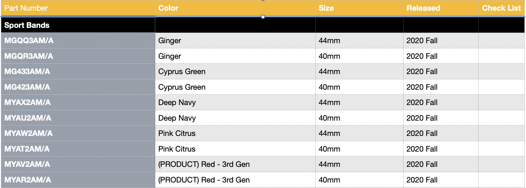I’ve been doing a lot of thinking on our new colors. I’m split. Ginger is a nice medium yellow. Not too dark, not too light. Maybe a mix between Canary & Pollen? Cyprus Green is a good medium dark green. I mean, it’s definitely dark, but I can tell the kind of vibe Apple was going for, and I’m not opposed. Might be adding that one to the wishlist. Deep Navy is now an anchor, so it’ll most likely outlast the rest of the fall bands. They’re selling it as the default for the blue watch, so as long as the blue watch lives, Deep Navy lives. (More on that in a second.) Pink Citrus... too close to Pink & Clementine. Unless you’re going for completion, or just like weirdly named bands (looking at you, Vitamin C! (Which is already discontinued?)) skip this one. Product Red is definitely a new shade, so I need it if for any other reason than to complete my (RED) collection. Almost a Red Raspberry 2.0, but with more red. Also an anchor default for the red watch, so it’s not going anywhere either.