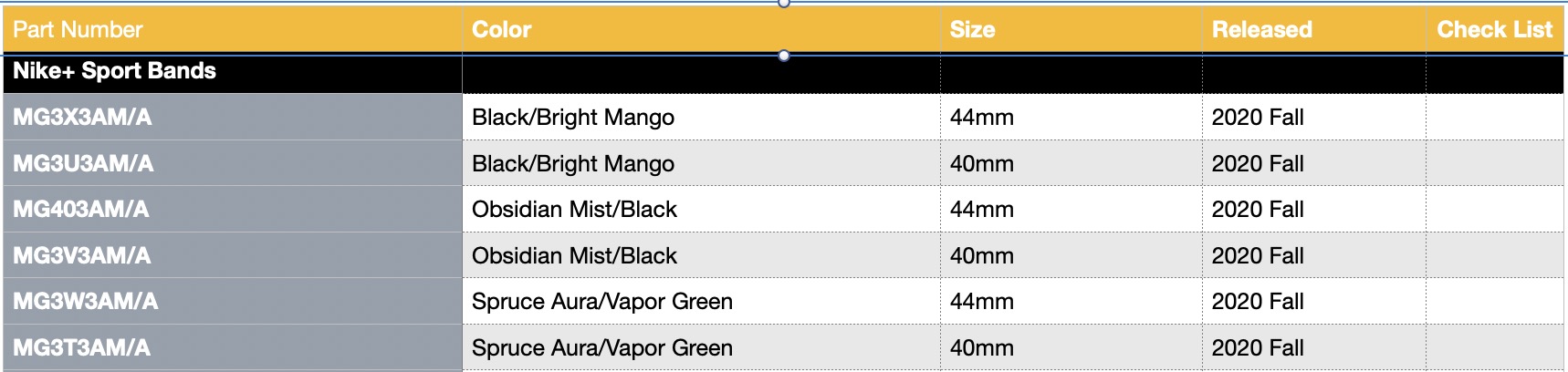 @athousandbands was very close this time around in his predictions. We’ve got Blue Black/Bright Mango which looks like a great Halloween band. It’s definitely a fall band in my book. Obsidian Mist/Black is dangerously close to Magnet, which doesn’t surprise me much. Would love to see some comparisons on that one. I’m just the tiniest bit disappointed it doesn’t have a black pin. Also, that’s a very dark shade for Obsidian Mist! Spruce Aura/Vapor Green is just Spruce Fog/Vintage Lichen with the lights on, but that doesn’t mean I want it any less. We need more bright Nike bands, and this one’s a welcome addition. All three of these bands have seemingly random text color on the back, which may be a new trend. I’m not opposed though, it’s why I love the Nike bands. They’ve got so much color in them! Purple Pulse Sport Loop is looking to be the next Hyper Grape. Lots of conflicting colors in that one, yet it pulls it off. Next order I place with Apple I’m sure to include it. Obsidian Mist Sport Loop I love as well, but I’m not too sure why. Might just be that gray and green combination.