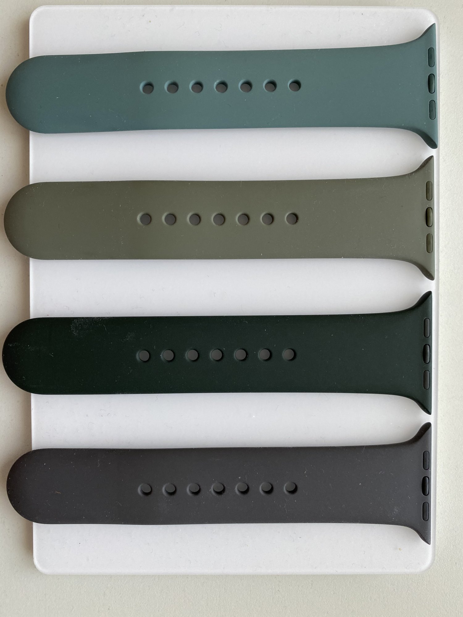 Cyprus Green sport band just came … and I have massive Pacific Green flashbacks. It's much darker than I thought, one of those almost-black "colours" Apple somehow likes. I think it will go back (just like Pacific did).