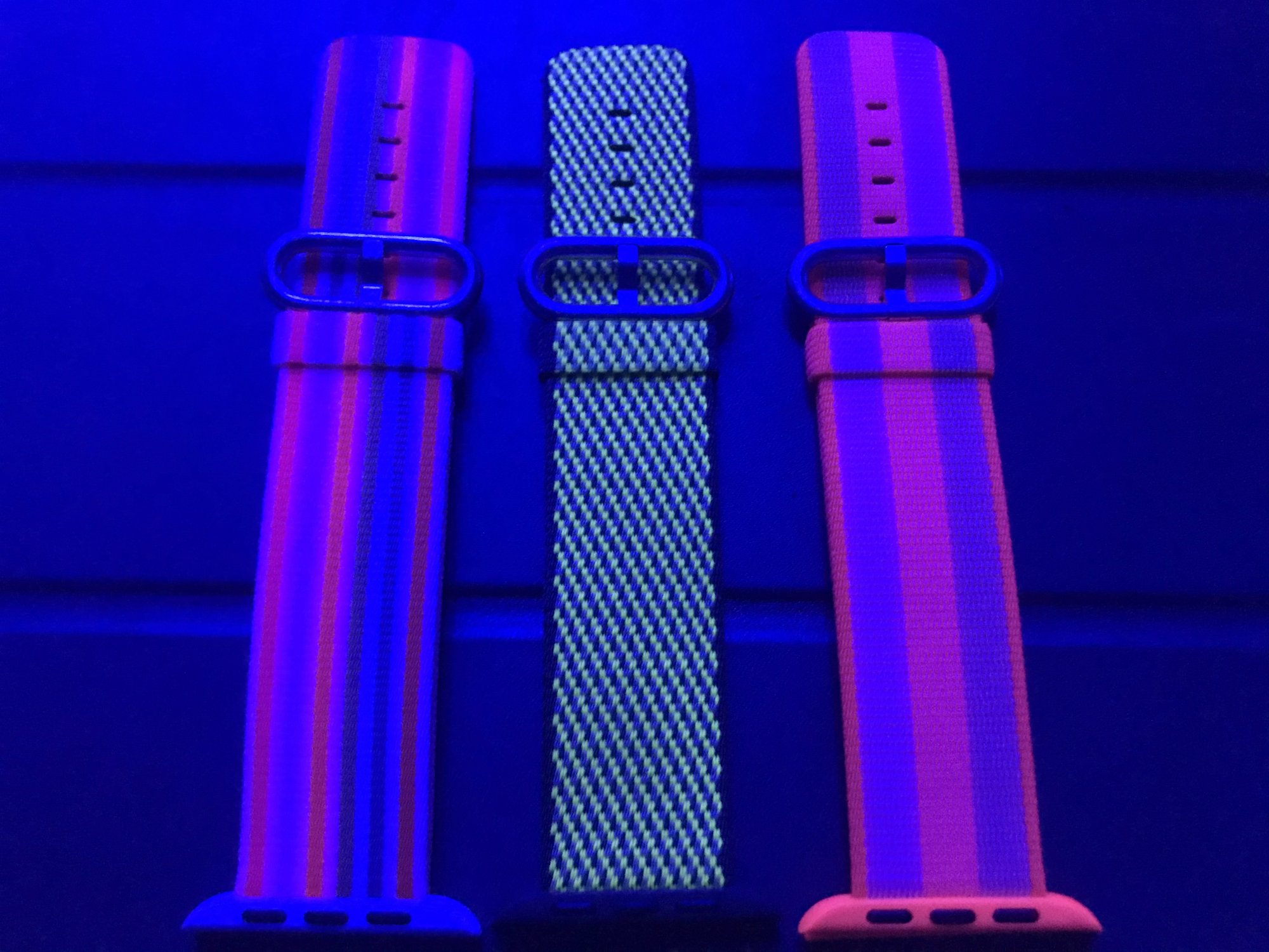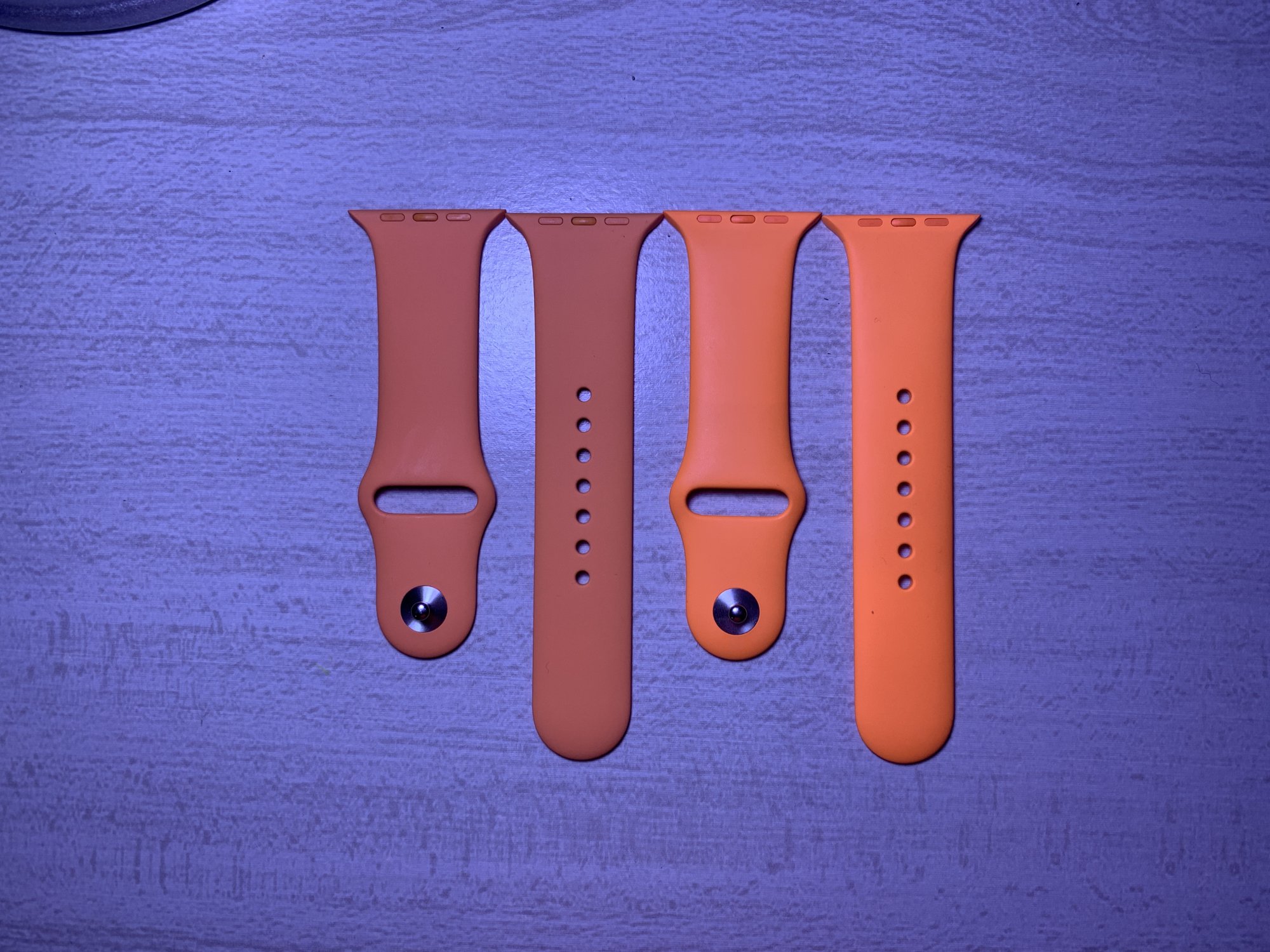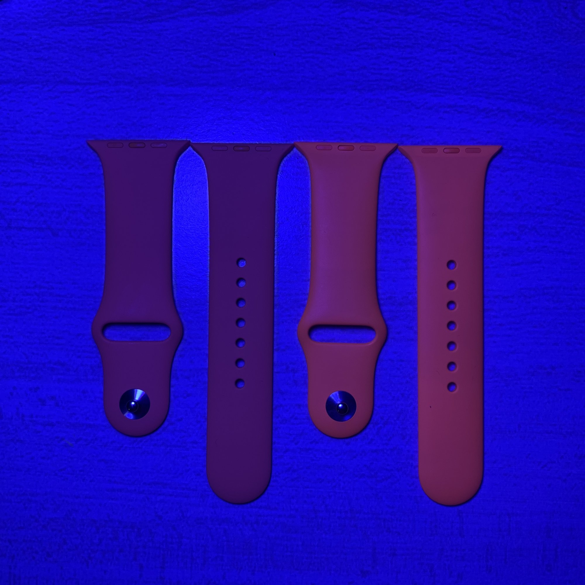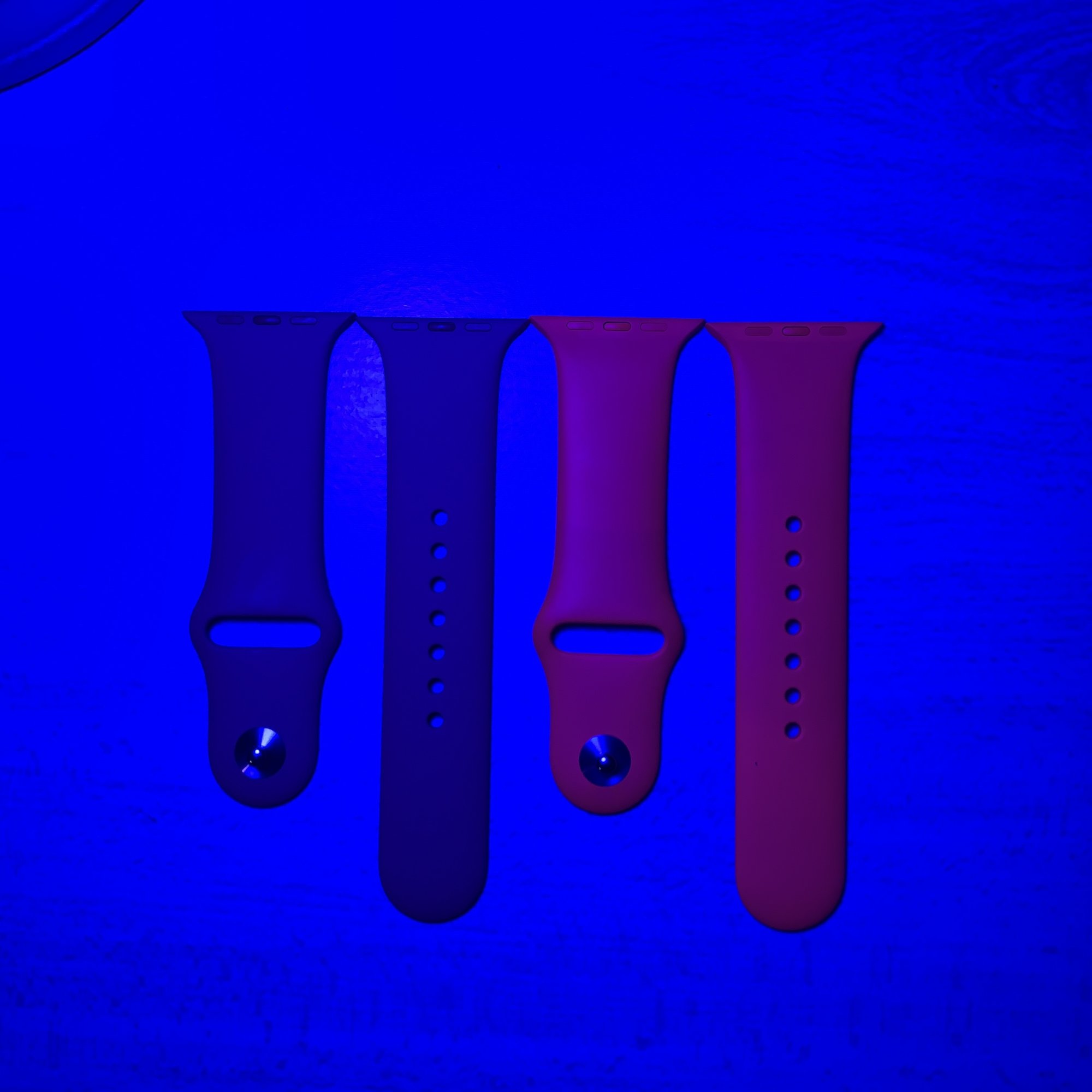All the more reason to wear Vitamin C to the next rave party!I have a couple of multi-color Phillips Hue lights installed in my room. Today I got papaya, and when I opened it, I couldn’t tell the difference between that one and Vitamin C. My lights were configured to a warm setting, but then I noticed that if I change the light to a colder setting the difference is way more noticeable. Furthermore, the more blue the light, the more Vitamin C glows and papaya gets dark. I wonder if this has to do only with the undertone of each band or the material is actually different 🤔