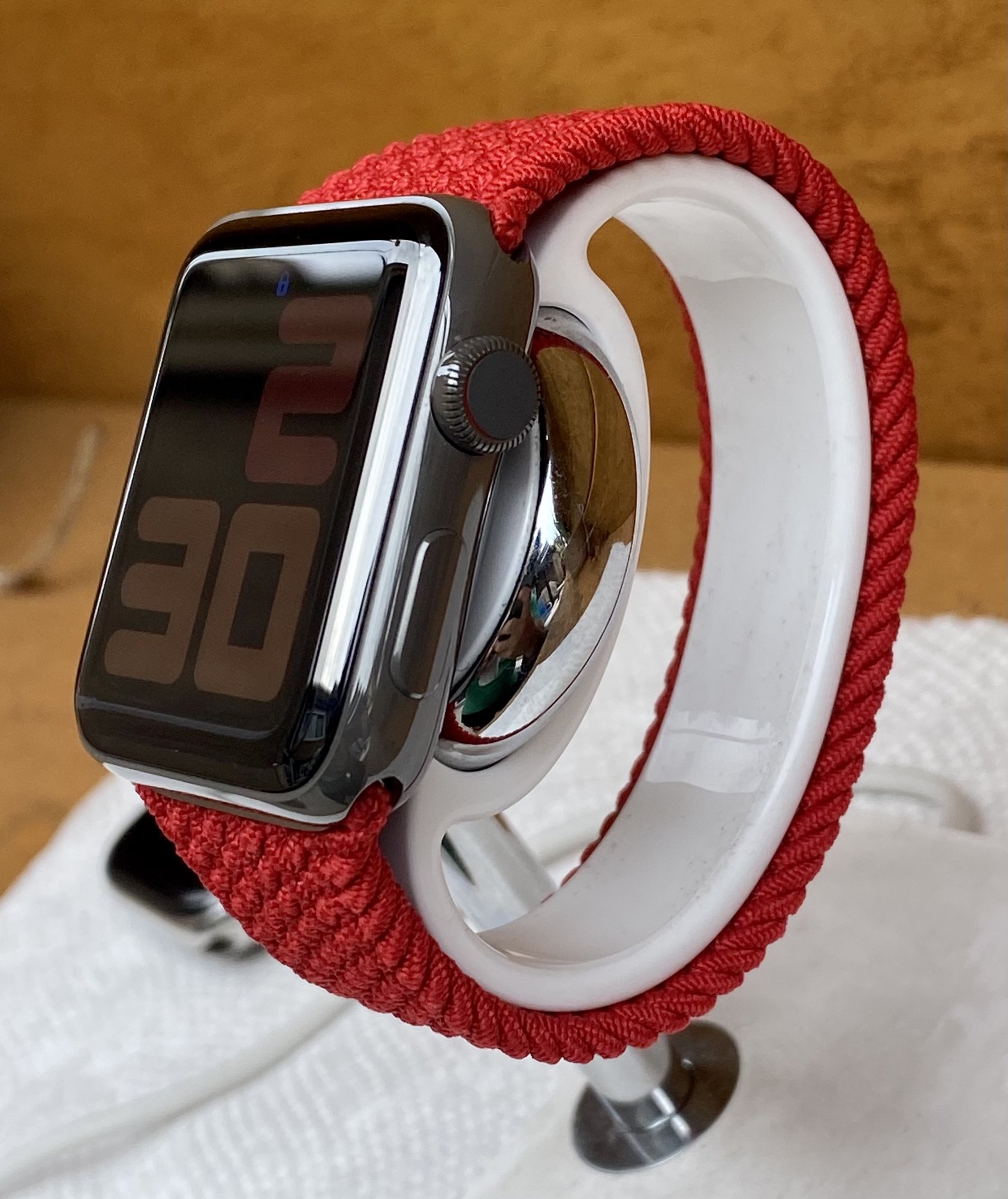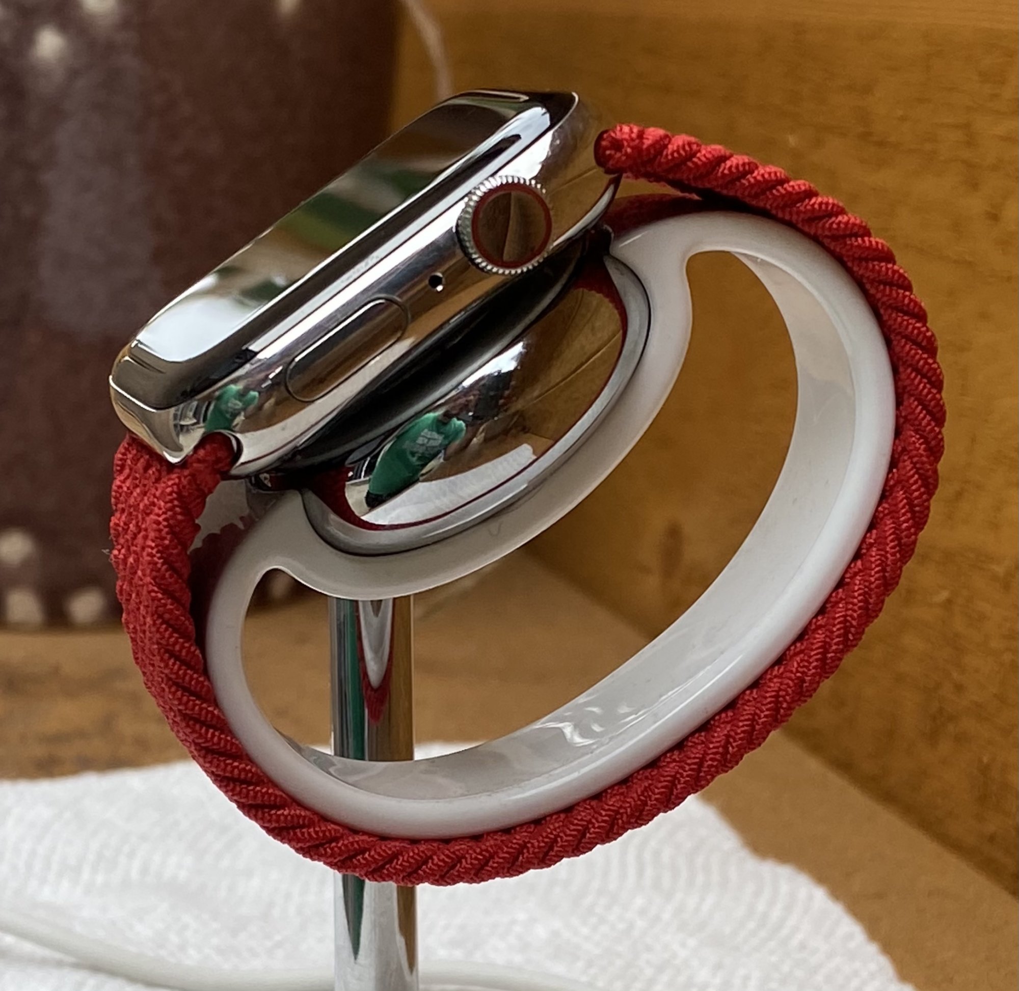 Sadly they stopped making it without the phone dock attached but look around for a Belkin Valet. I love it. Definitely has the “Apple supervised this Belkin product” feel. Looks just like the store display, just thicker and partially plastic.Really beautiful the red braided!! Can you send me the link of the stand? It’s gorgeous![]()