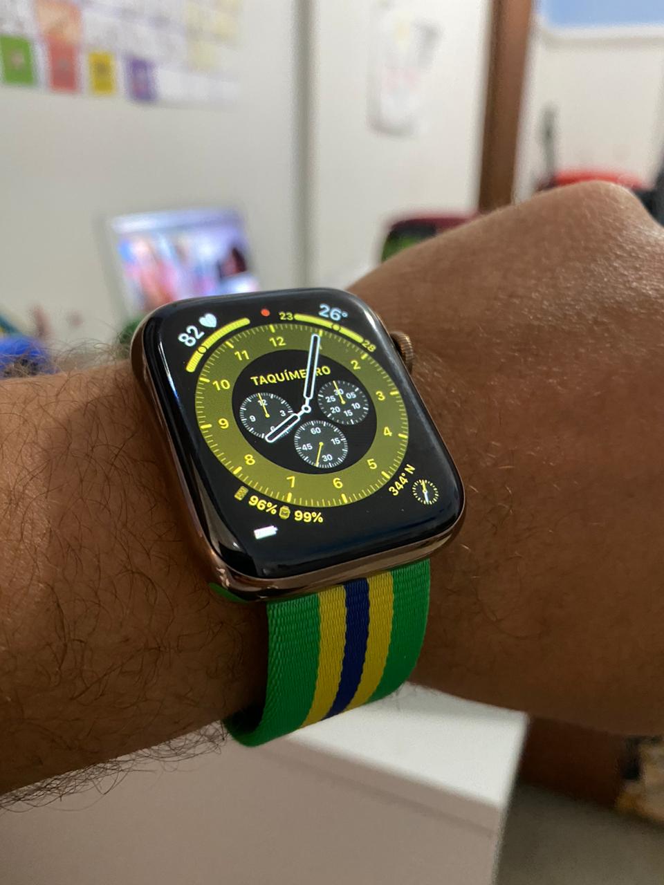 A Franktenstein’s Monster of a band created perhaps by a mad scientist combining the front of Black / Volt with the back of Midnight Turqoise / Aurora Green, you can practially see the bolts in its neck. Actually, that’s just the space black pin. Nevermind.