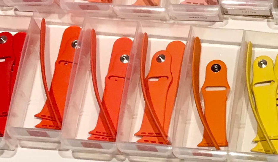 That almost looks Apricot-y to me. When I first got the original Orange, I thought it looked waaay to close to the first gen (PRODUCT)Red. I got it again end of last year, only to complete my collection. Yes, the bands, ALL the bands, look different in different lighting!