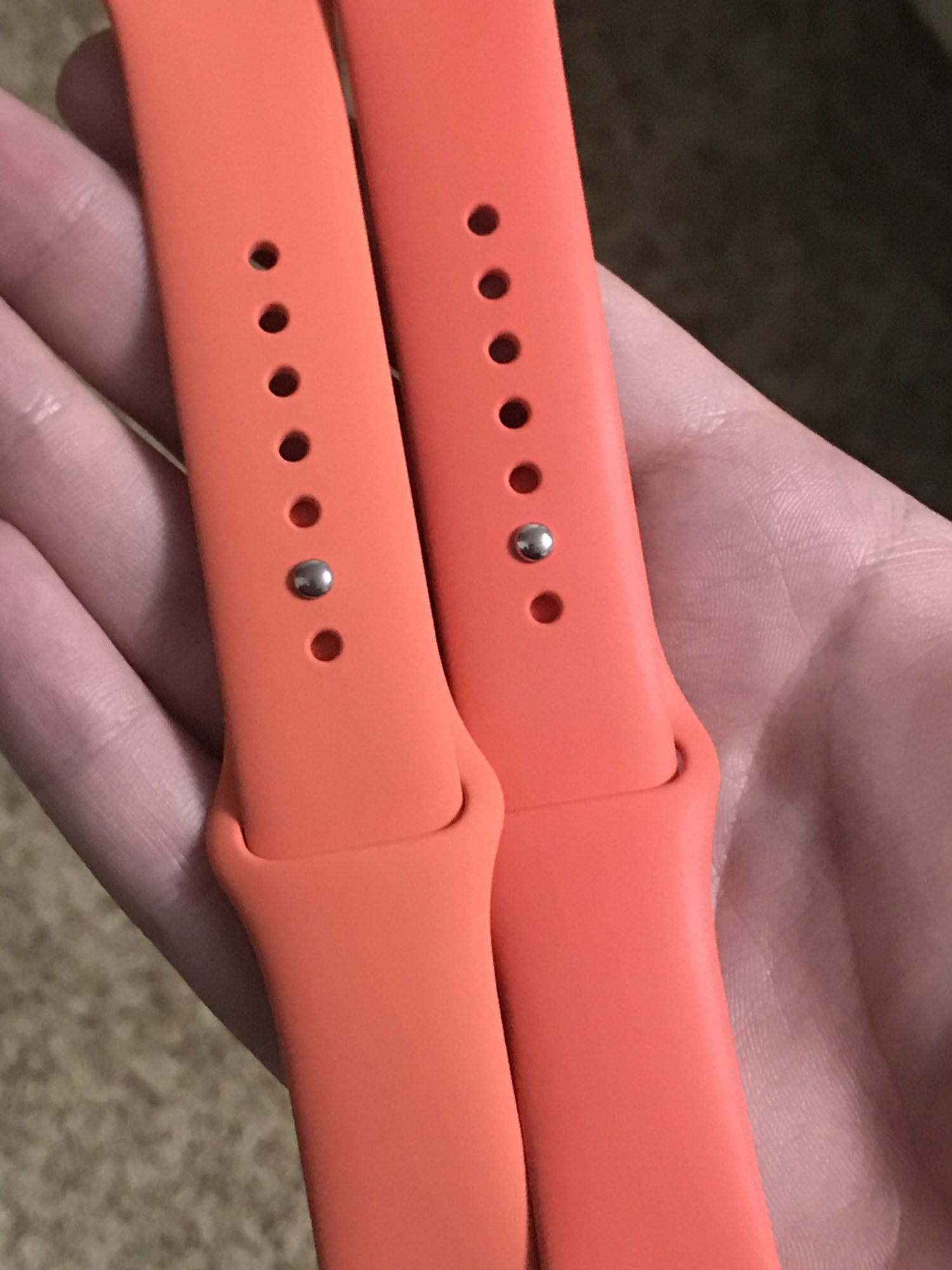 Yeah my Clementine is definitely more orange than pink. Next to Pink Sand:Clementine on the left, Pink on the right. Figured I’d add on top of tousandbands here since lighting changes the comparisons drastically.