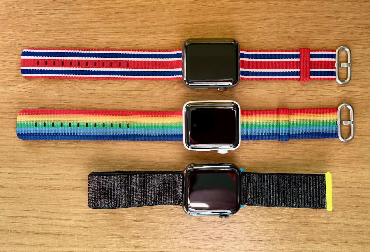 GBR International Woven Nylon, 2016 Pride Woven Nylon and 2019 Close Your Rings Sport Loop.