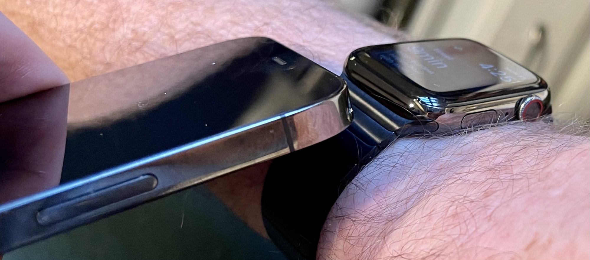 Thanks for the pic. My phone is in a leather case all the time - I don't actually like the super-shiny flat edge look, though my Midnight Green ran naked its whole life so I could see the green SS. It actually looks a bit light to me in some lights, and to my eye in the photo above the Watch looks like it could be darker.An extremely fast and dirty shot, but yeah seems like phonephite is duller and darker than watchphite. Roughly the phone seems to be replacing space gray phones and the watch trying to be a dark version of the silver stainless?