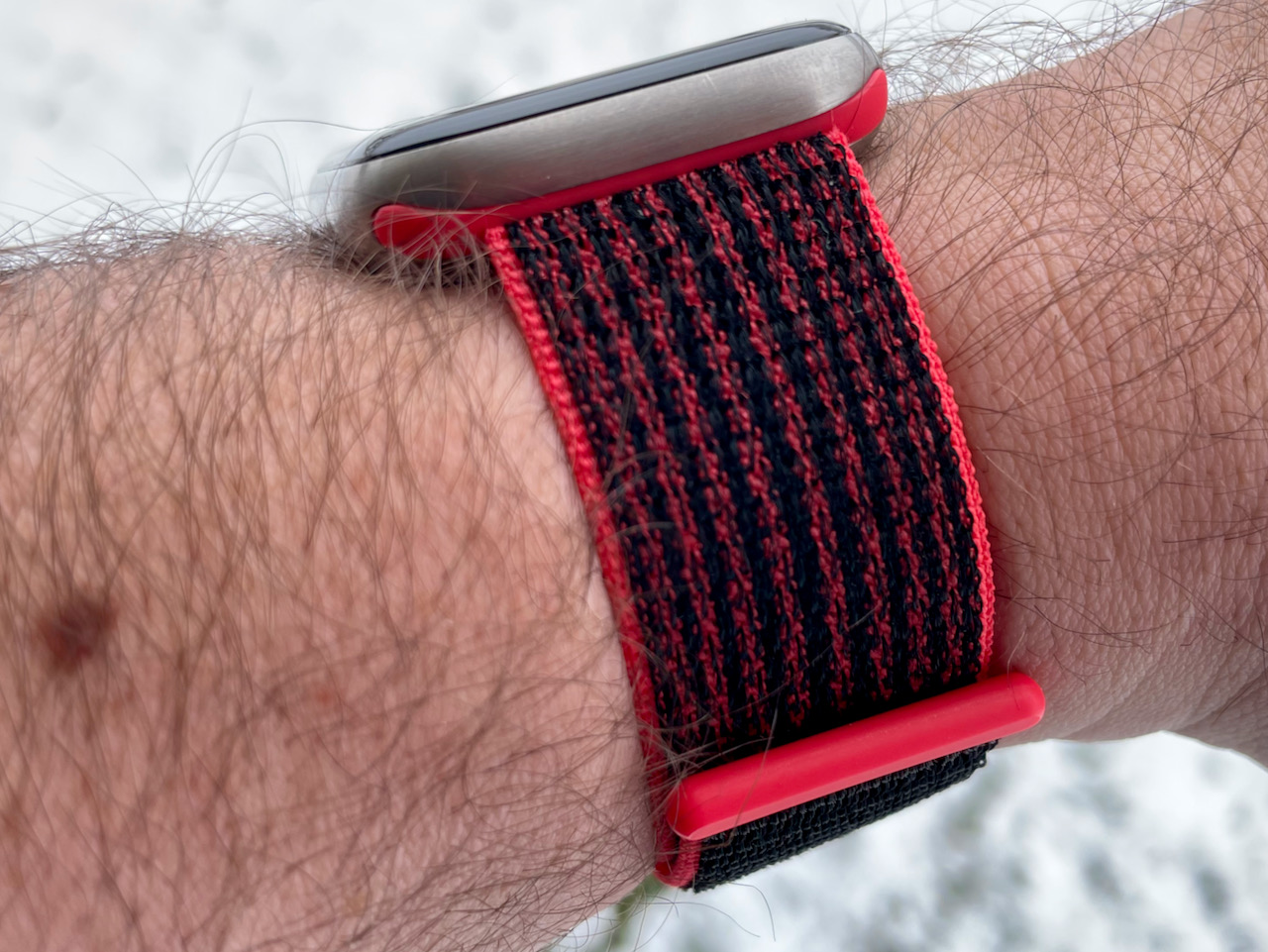 Today's band -- Bright Crimson / Black. One of the OG Nike loops.