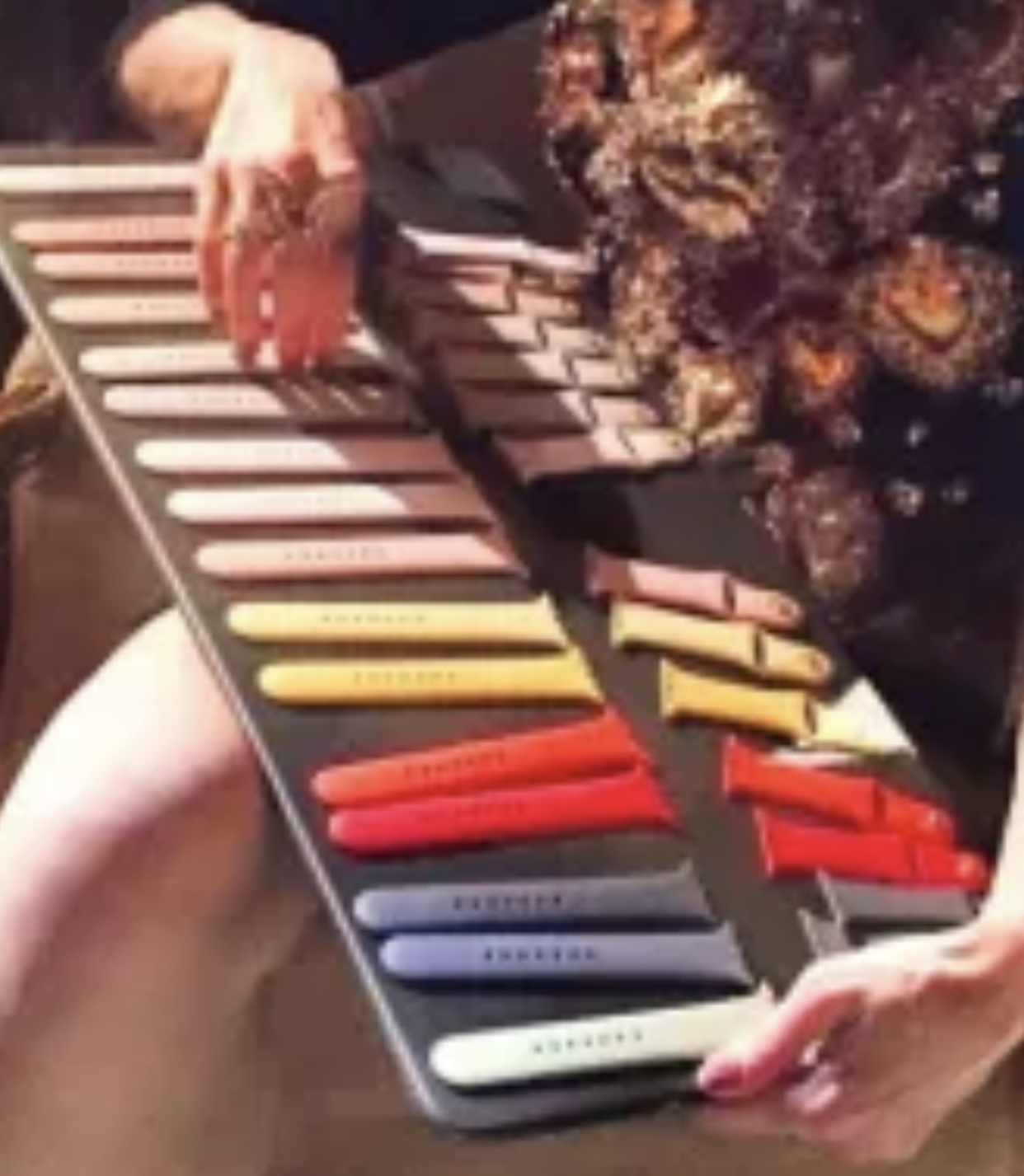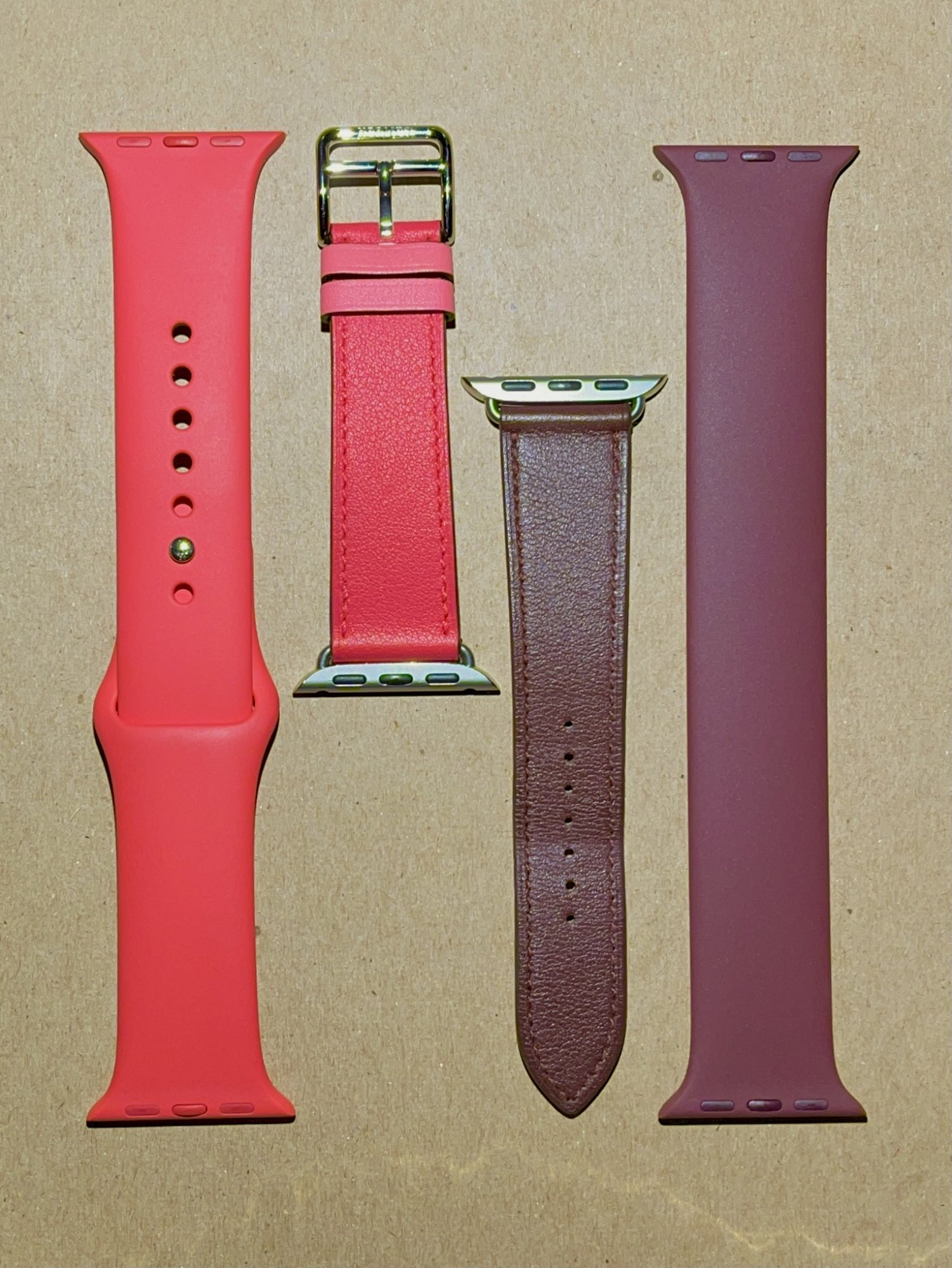 Seems like all of them eventually got released. They stand out to me as the various pink sand/flamingo/vintage rose/lavender bands on the left, maybe with one or two pre-production samples thrown in, with the right containing Light Pink, Lemonade, Yellow/Pollen, Orange, Red, Midnight Blue, pre-production lighter Midnight Blue, and Turquoise/Marine Green.After disappearing down an Internet rabbit hole just now I eventually stumbled on the below, which I sorta remember from back in the day. How many of these ever saw the light of day do you all think?