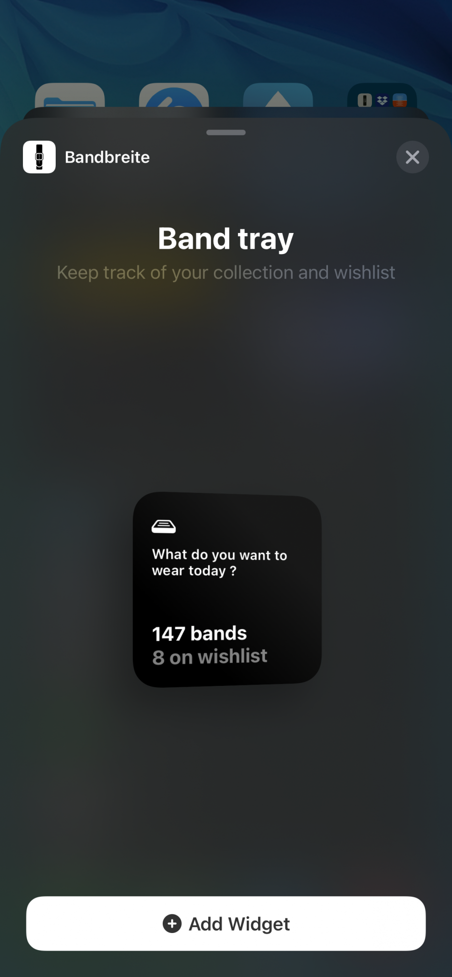 I have been meaning to say THANK YOU for creating the app! In the short time I've been using it, I've seen progression in development, you're active on the forums and in general it's what the band collecting community has needed! Just a great way to keep track of bands. Wish you continued success.Thanks! A forced reboot of your iPhone? 😳. It seems to work fine here on my homescreen, but I will pay a little more attention to in the next couple of days.