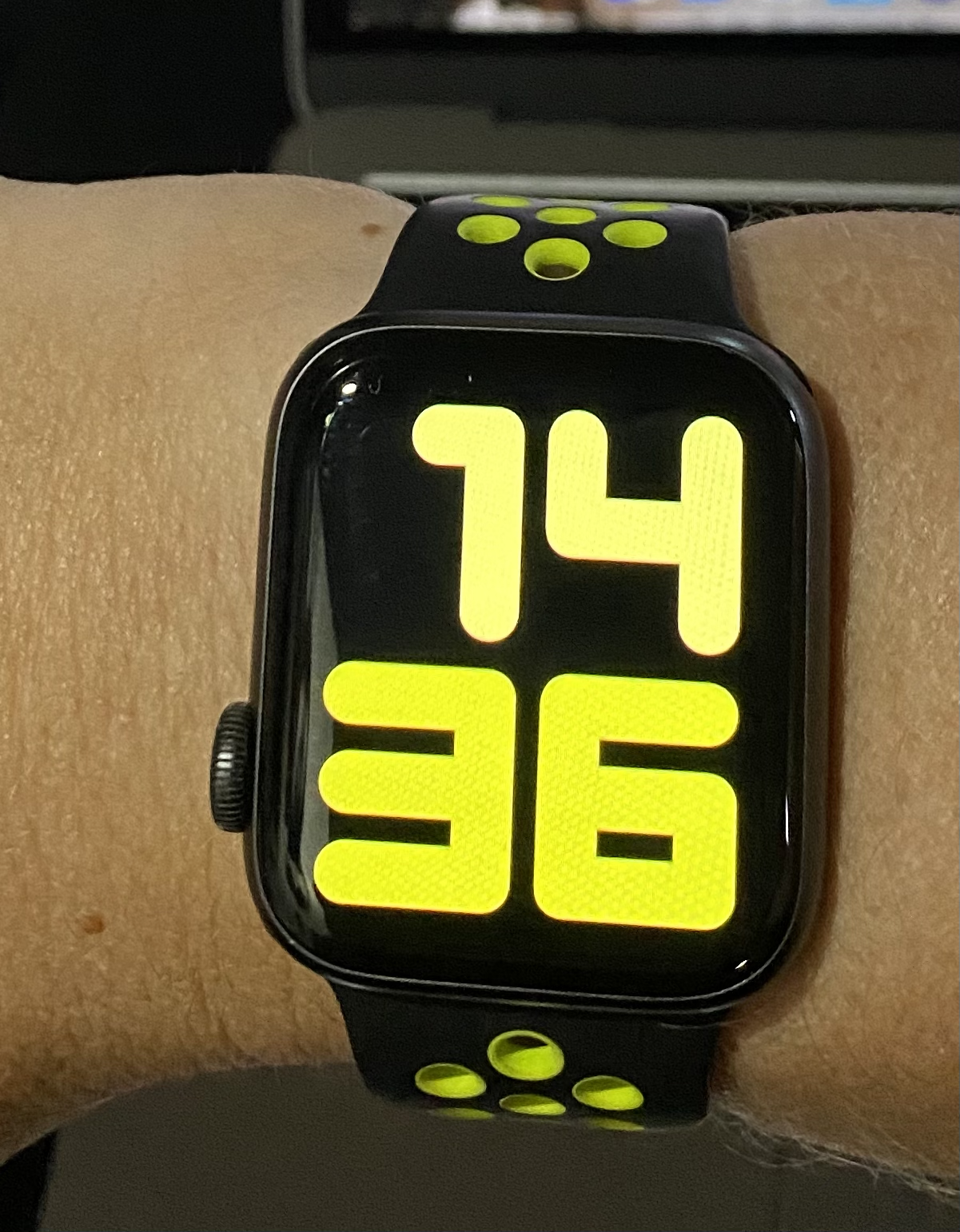 Most of the Apple colors are maddeningly just one tick off the Nike. I use Flash Light for Volt.Got another band in. Picked up a black/volt nike band for 18 bucks. Not in the best of shape, but the worst wear is in the large strap which I no longer use. I cannot find the matching color in in the Numerals Duo watch face, any suggestions?