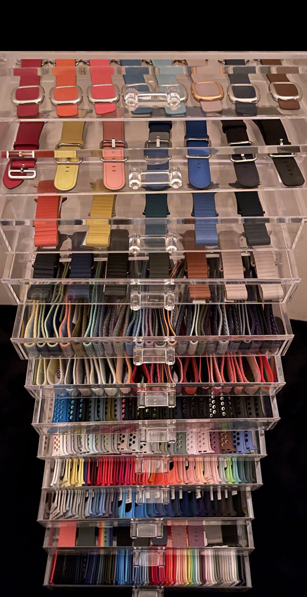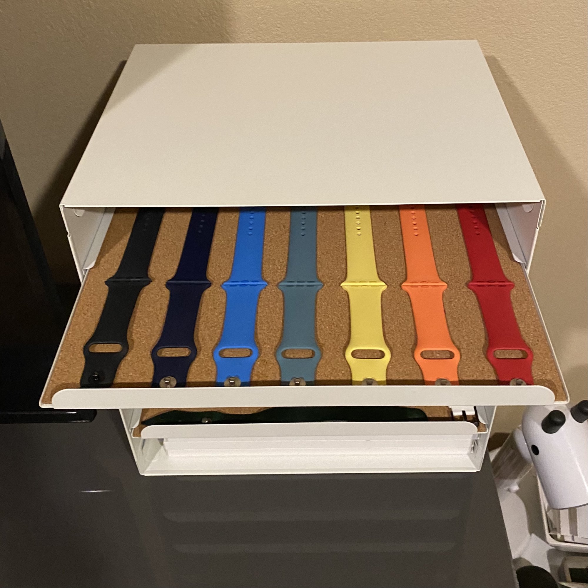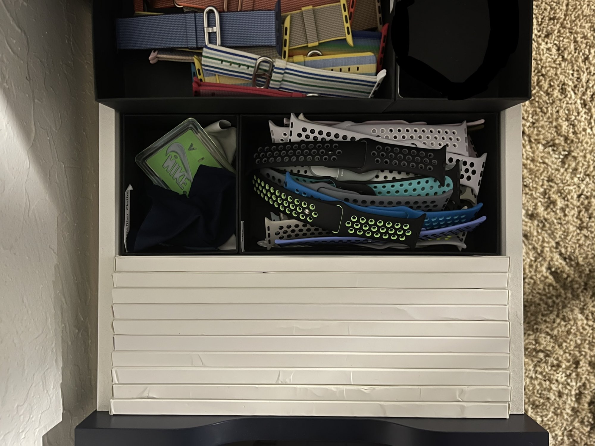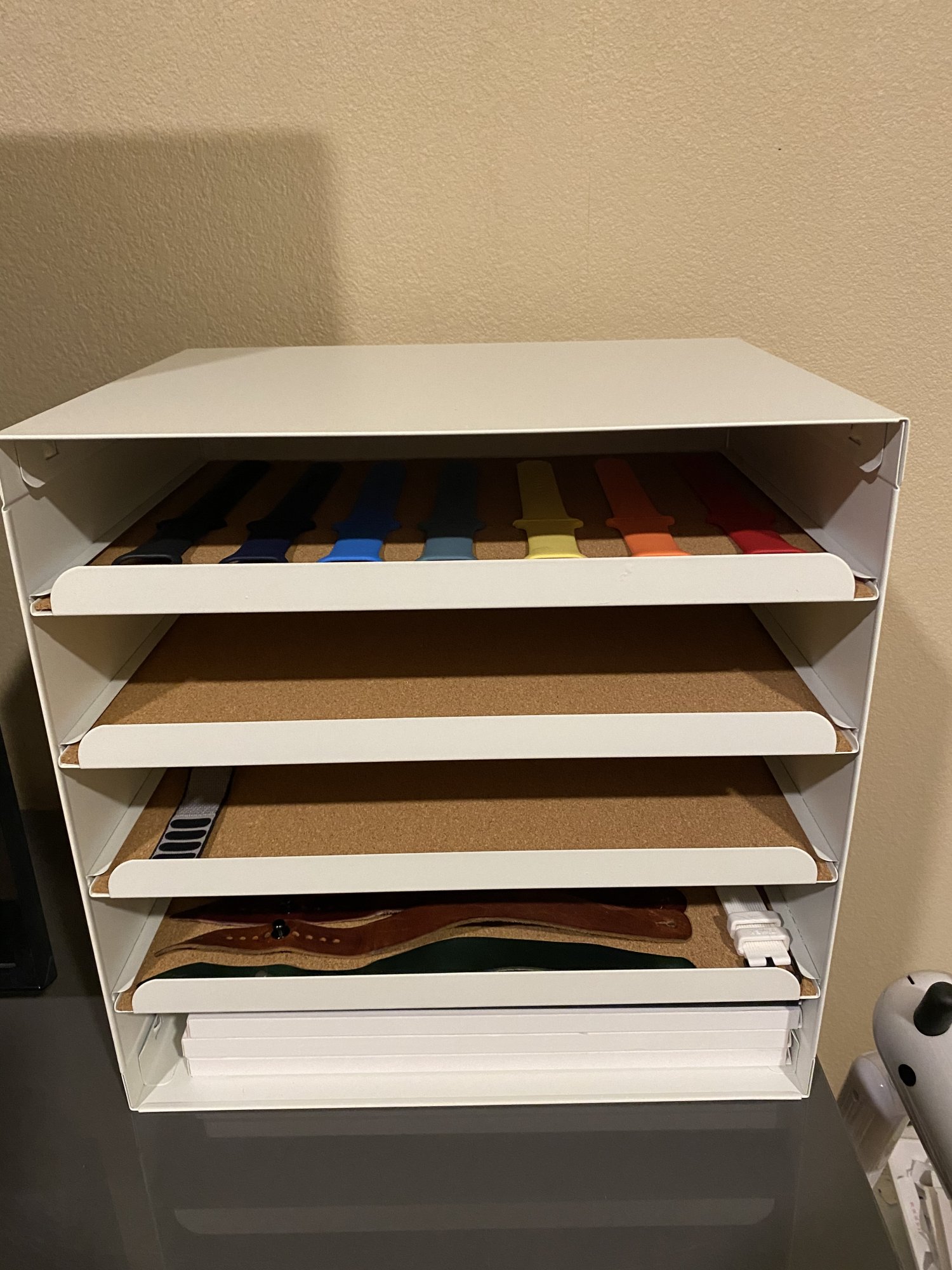 Awesome! IKEA is a great place for band storage. Great collection too! We all start somewhere. Though I have to 1up you on my perfect fits...Just starting my collection. Sport band: black (bundled), deep navy, surf blue, cactus, ginger, vitamin c, RED (2018). Sport loop: anchor gray and olive flak. Found this nifty letter tray from IKEA. The depth of the compartment fits the length of the bands perfectly and the width fits the boxes.