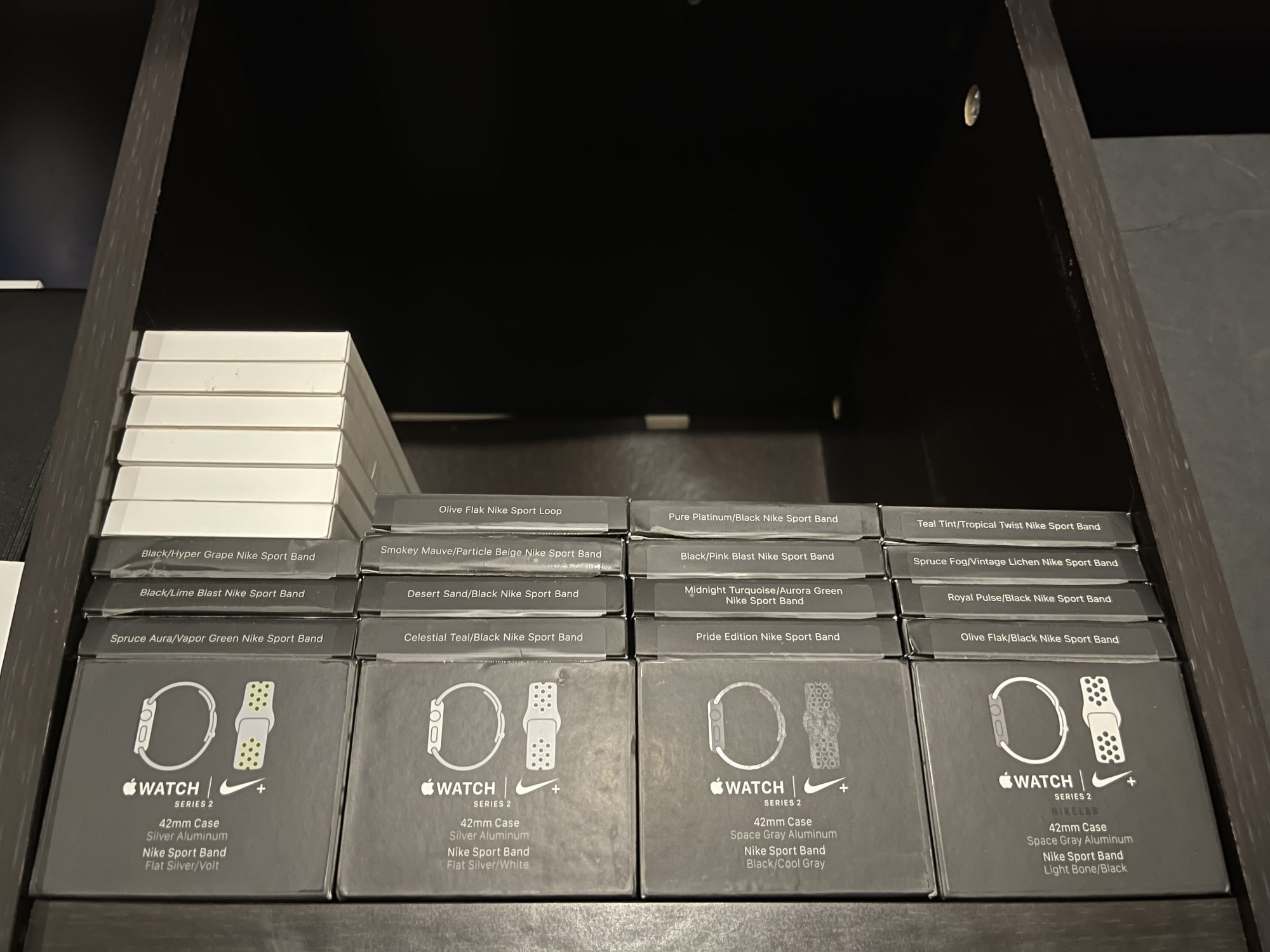Those are the actual Watch boxes. A while back I went on a quest to get all the boxes to all the Nike sport bands, but some of the first sport bands only came bundled with a watch, so I had to buy the watches to get those. Resold them to get my money back though.Oh wow. What are those square boxes?