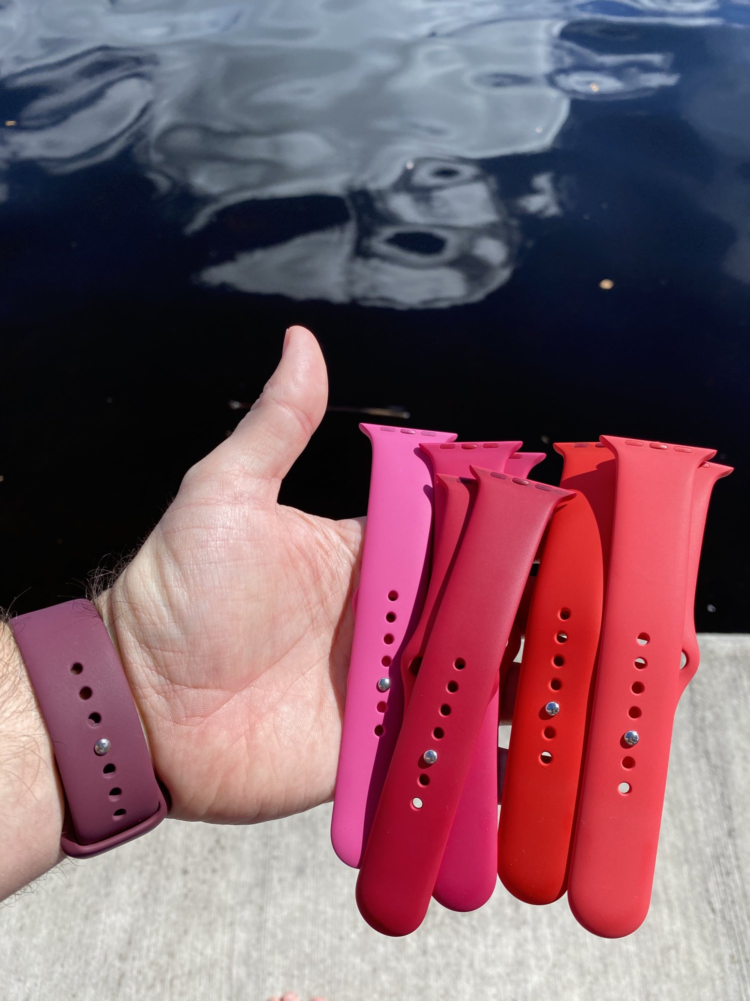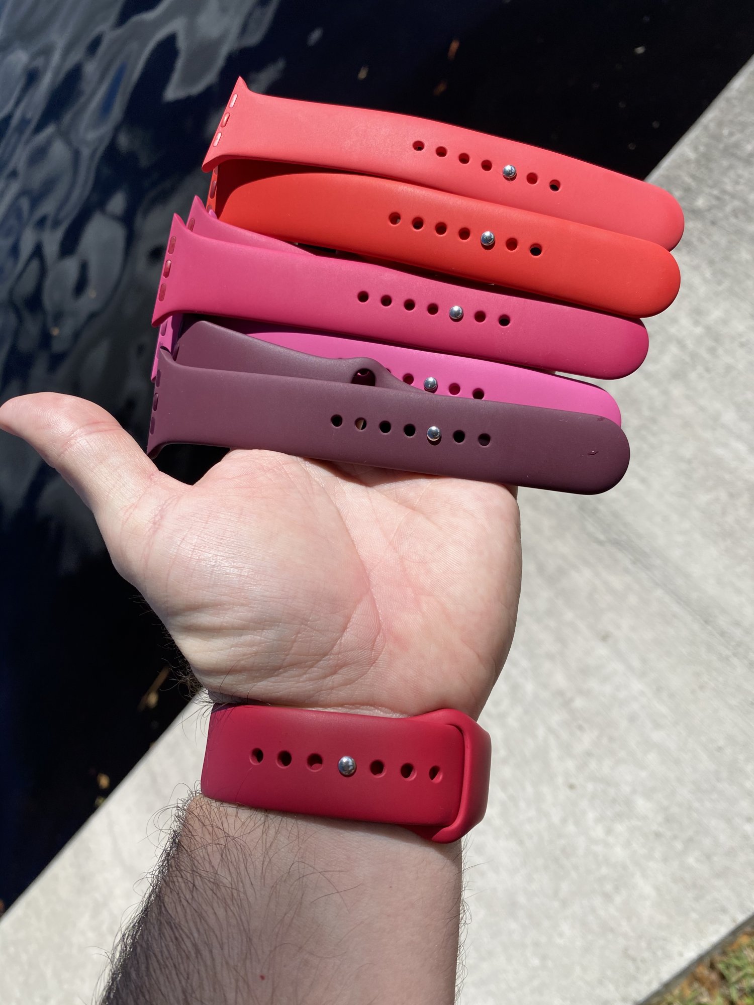 Fit for 42mm/44mm/45MM/49MM Apple watch. For 1set of Apple sport band rare Dragon Fruit color. Photo#8 is for color comparison purpose only. 100% Original Apple sport band. Pls check Apple's unique laser engraving on the clasp/lug, with crystal clear script "Assembled in China " as shown in photo#2.www.ebay.com
