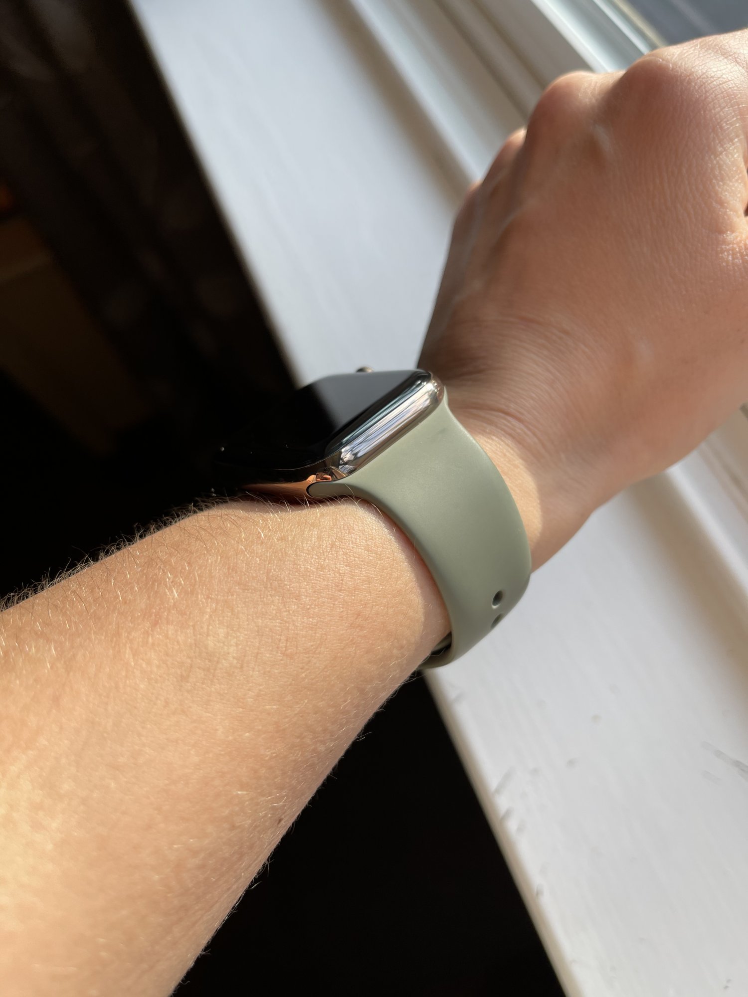 So your selling the grey band then 😁And so as from today I am the proud owner of a Series 5 Space Gray Titanium Apple Watch. It’s in pristine condition, the included watch edition sport band was never used and even still has the plastic tag around the pin. The Saddle Brown leather loop was only worn once or twice, because the previous owner had bought a sport loop shortly after and always used that band. 😁