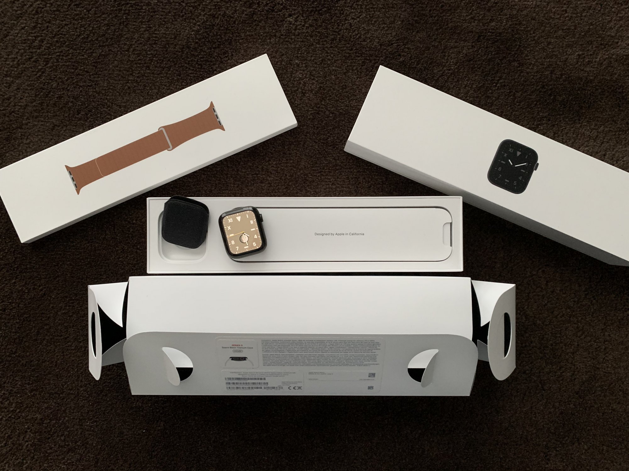 And so as from today I am the proud owner of a Series 5 Space Gray Titanium Apple Watch. It’s in pristine condition, the included watch edition sport band was never used and even still has the plastic tag around the pin. The Saddle Brown leather loop was only worn once or twice, because the previous owner had bought a sport loop shortly after and always used that band. 😁Made an appointment for pick up tomorrow.