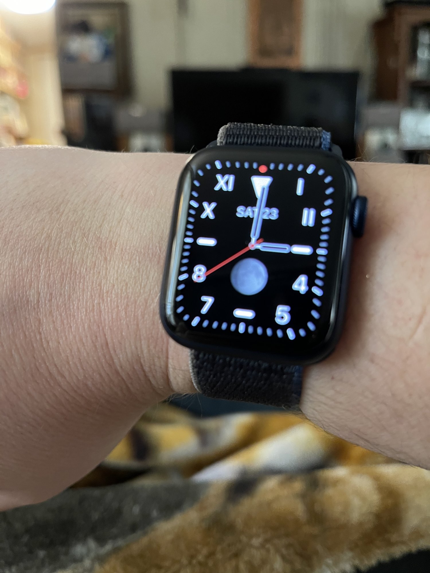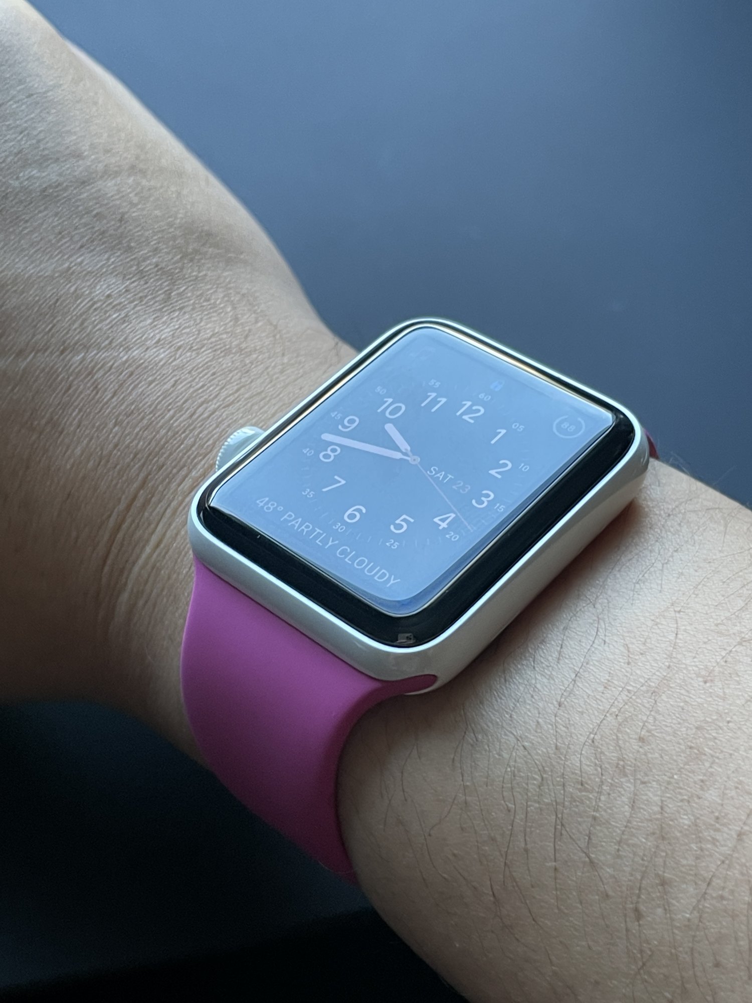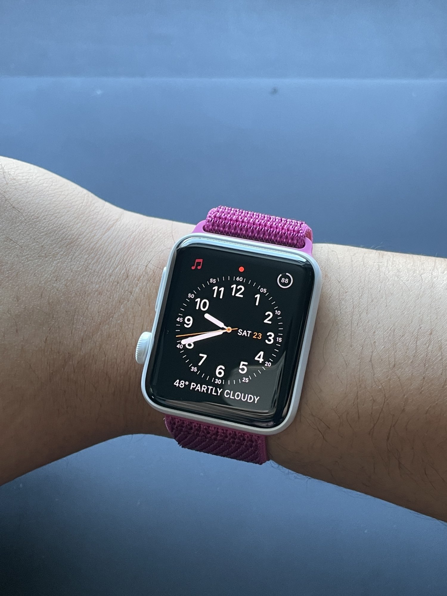 Although this strap is designed for the 42mm Series 1-3 Apple Watches, it will also fit the newer 44mm / 45mm Series 4 & later watches as well. The item is still genuine Apple though. The box may be very slightly tatty (minor dings on the corners etc from storage), but this will not affect the...