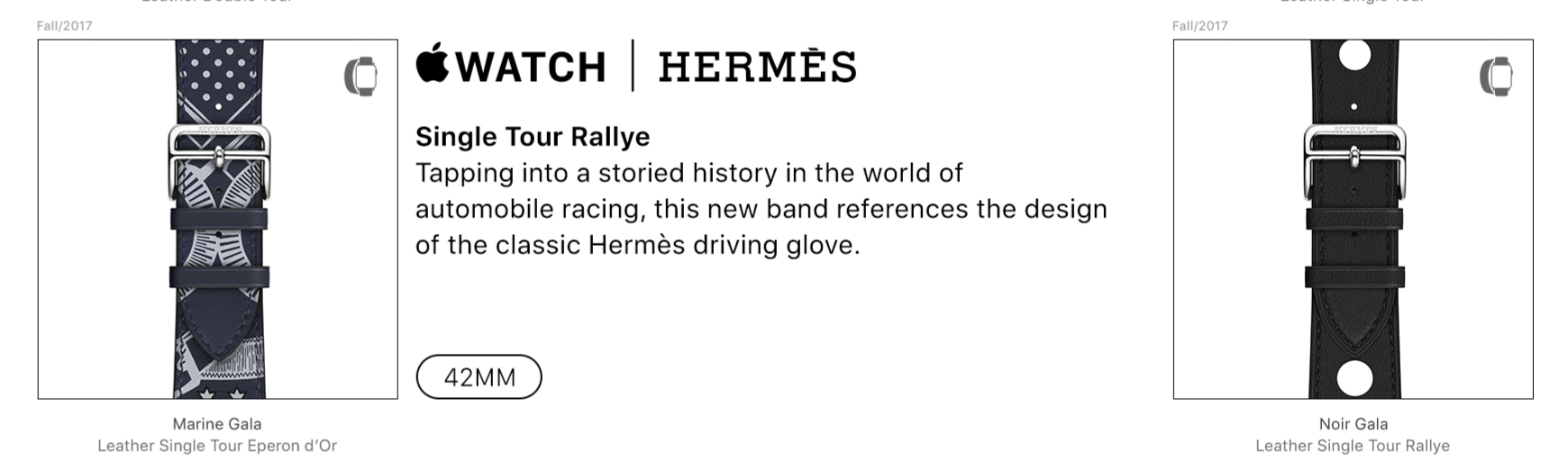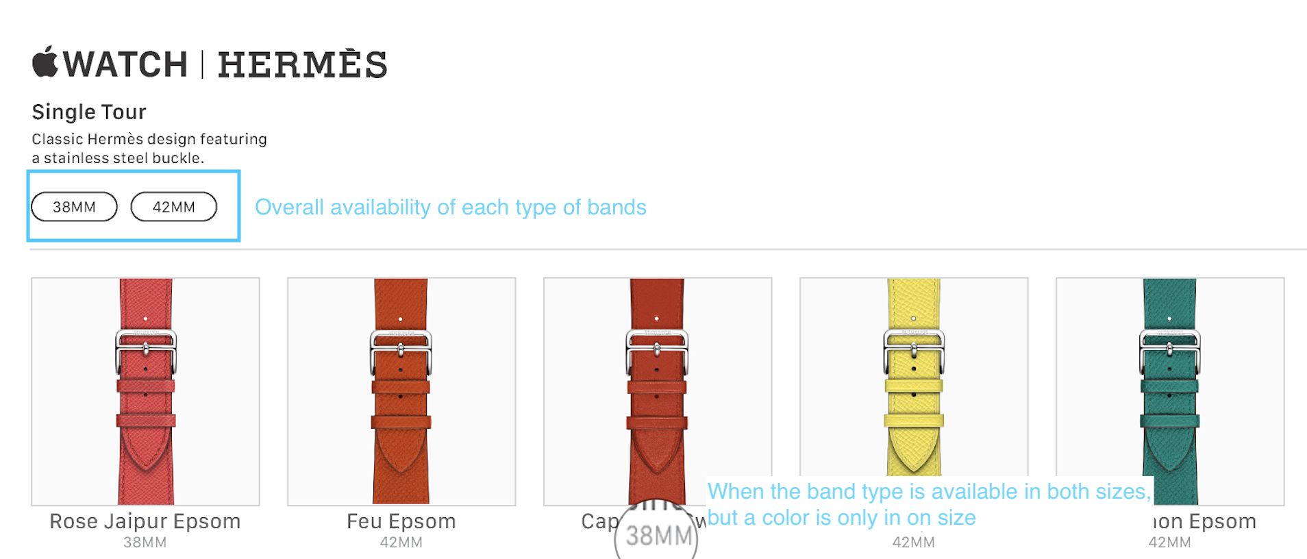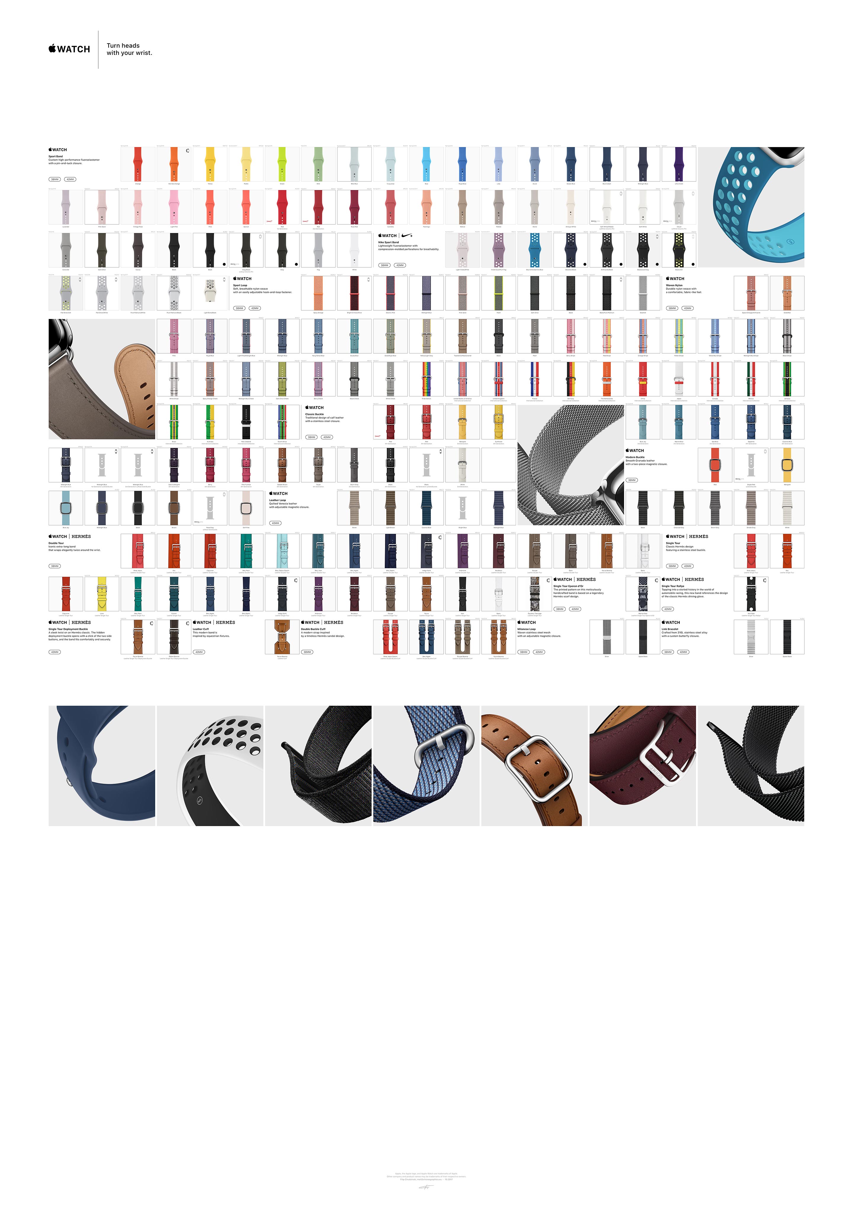 While @choreographics excellent start on this project inspired me to start collecting all the (42mm) bands, I always felt that he should have open sourced it because this is not a 'one man' controlled project. Because inevitably become out of date. It should be a crowd sourced effort. So THANK YOU for taking this on. I am happy to help on the Hermes bands 38mm vs 42mm differentiation. As someone else I think pointed out, it would be AWESOME to show which bands came in 38mm vs 42mm. For example, the Single Tour in Etain Swift was publicized as both 42mm and 38mm but I cannot find an actual record of it on Apple's website for 42mm (using the Internet Time machine archive).