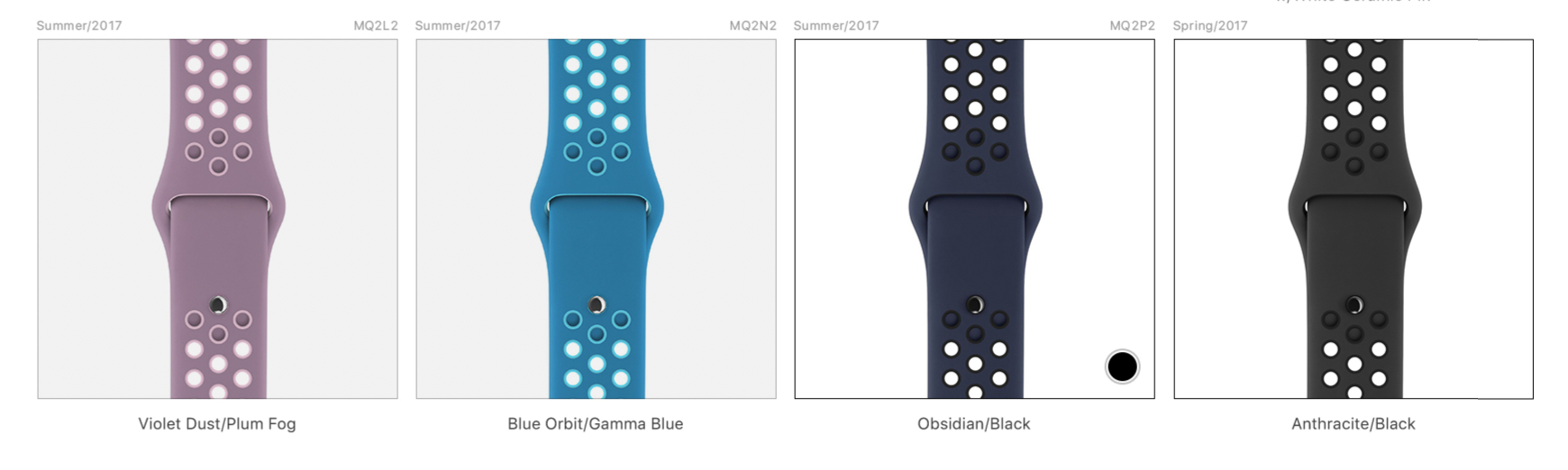 EDIT: Here's model # for the Black/Black pin band missing from your excellent list below: MNJ82AM/A