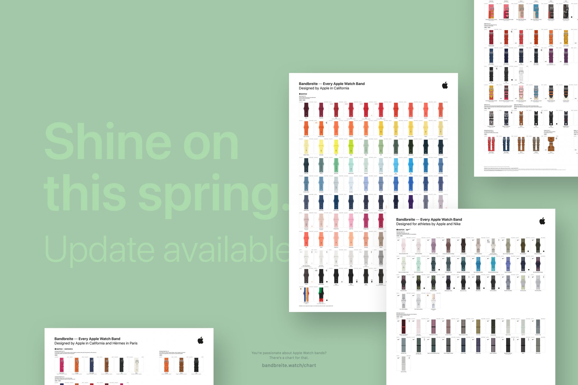 All new styles and colors have been added to the app. We also summarized all 27 bands released yesterday into a curated collection. * You can scroll through more than 460 with the newly updated chart, and get inspired what to wear next. * Both the app and the PDF are freely available to download at http://bandbreite.watch