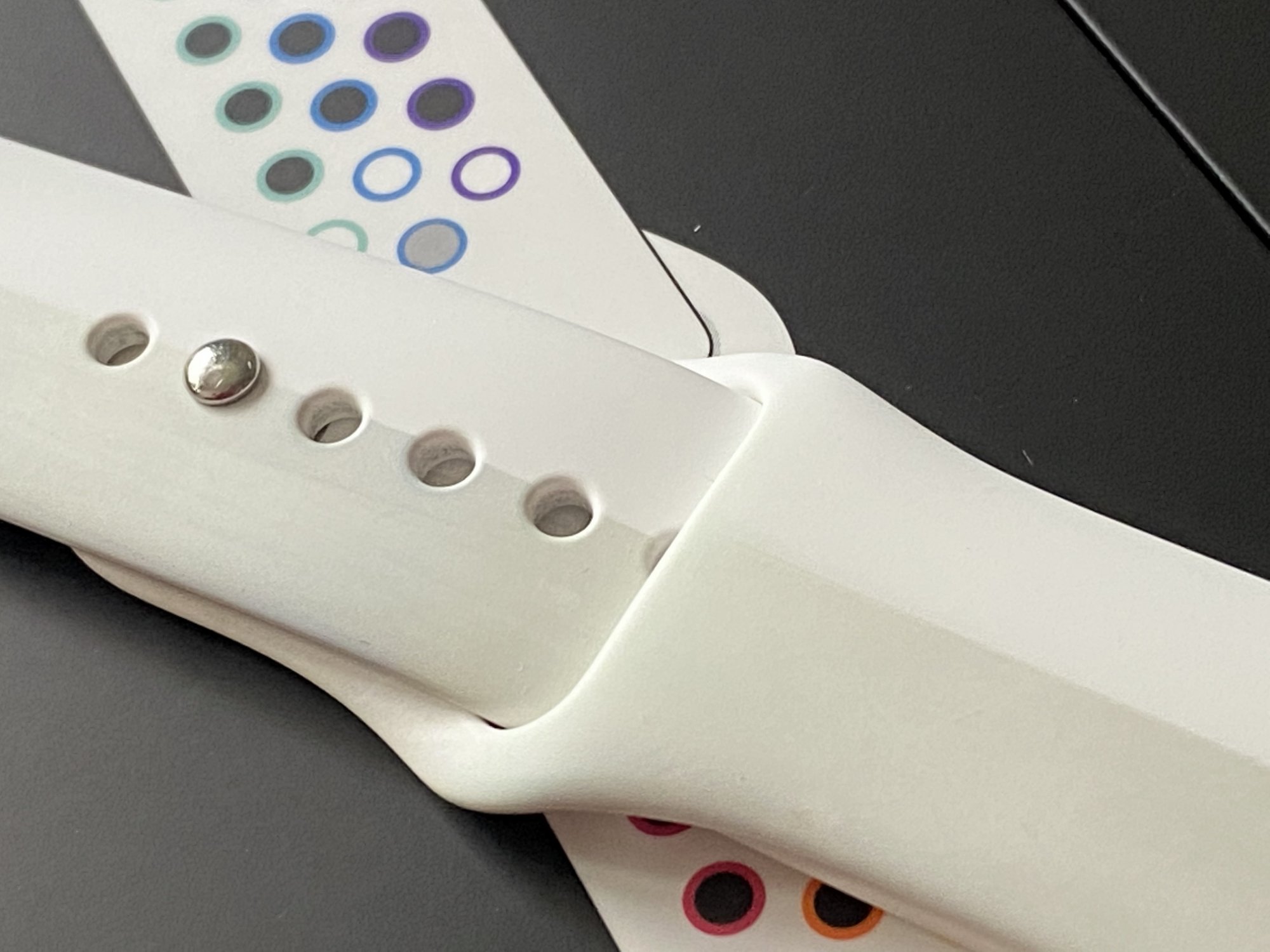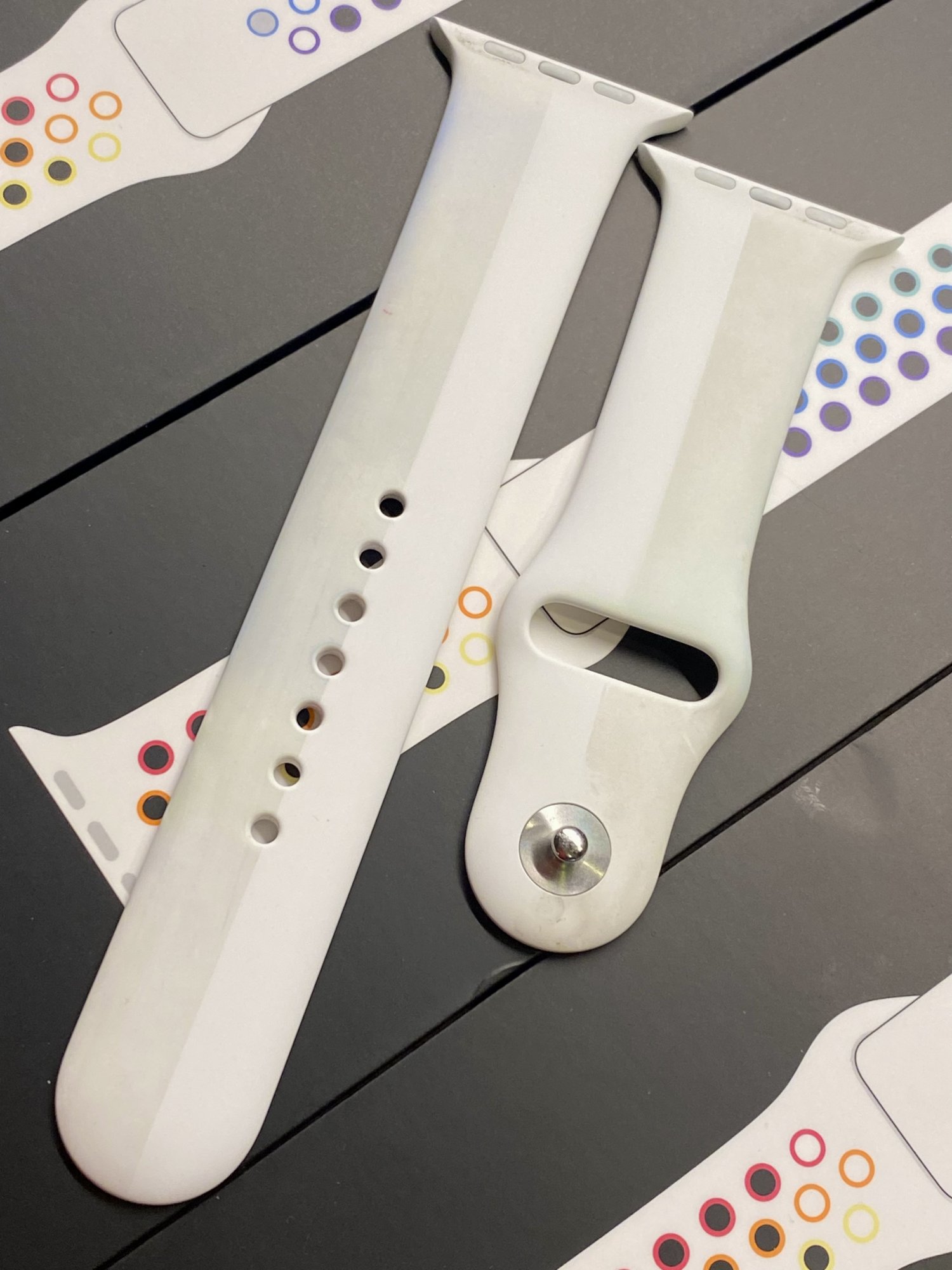A White Gen.1 as an example only half cleaned. Unfortunately, the photo does not show how new the band looks on the cleaned side in relation to the fine surface.