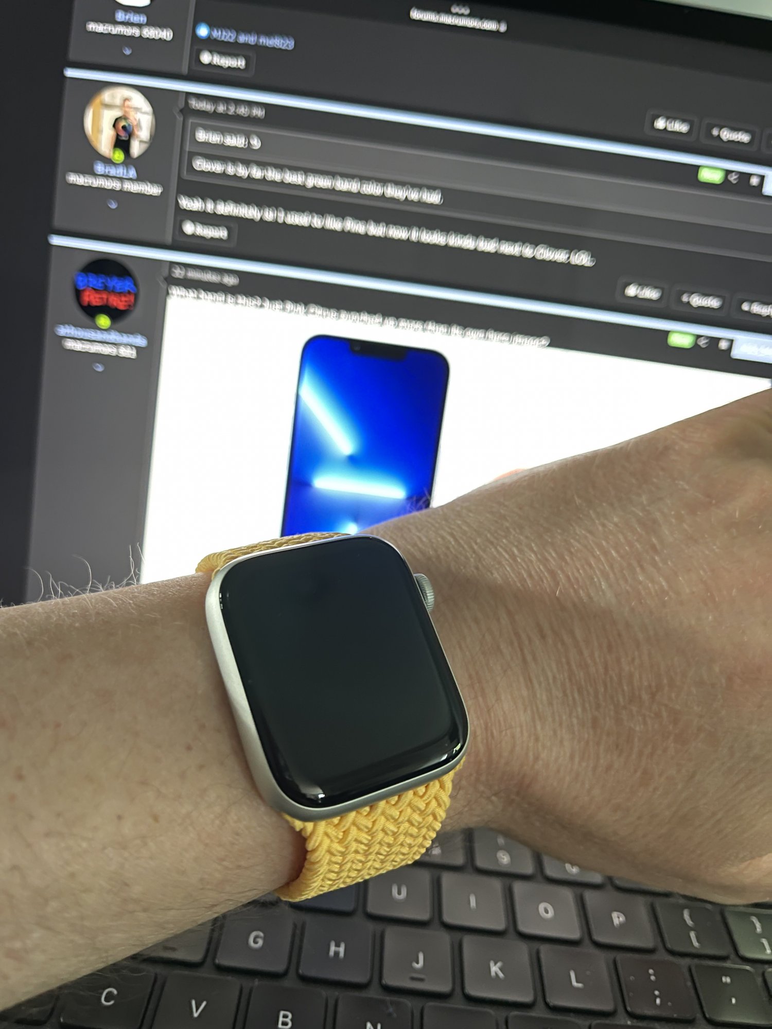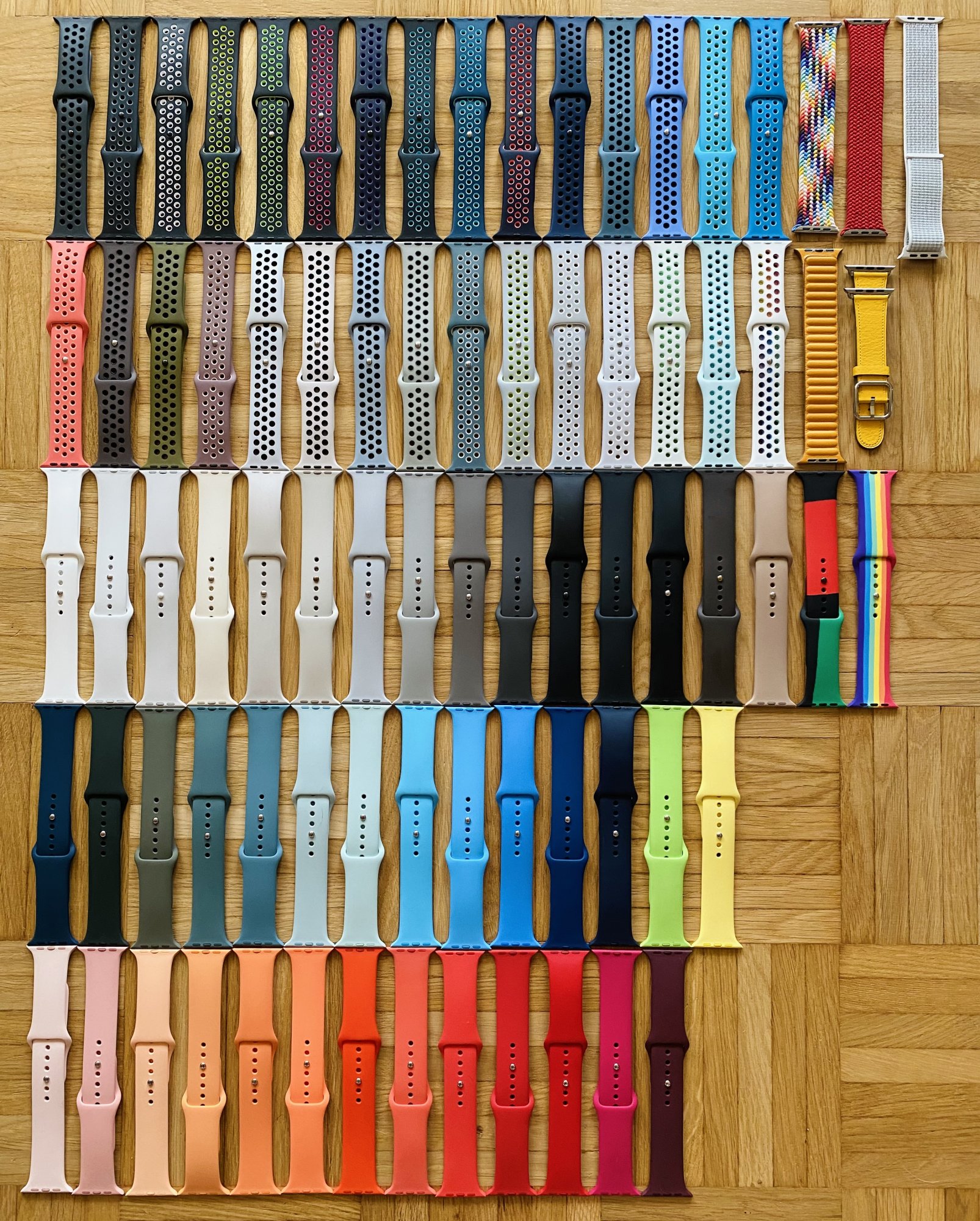 Something I noticed when the dust settled was that Apple’s new aluminum rainbow, combined with the SE, covers a lot of ground keeping the old colors around. I think two things to consider:I wonder why Apple doesn't offer a golden aluminum AW 7 and no more sand pink or at least a normal sports band in chalk pink 🤔 It feels like 70% of the watches here are worn by women with this combination 🤷🏼♂️ And I can almost see the solo loop here never what I understand because I don't like it either 😅