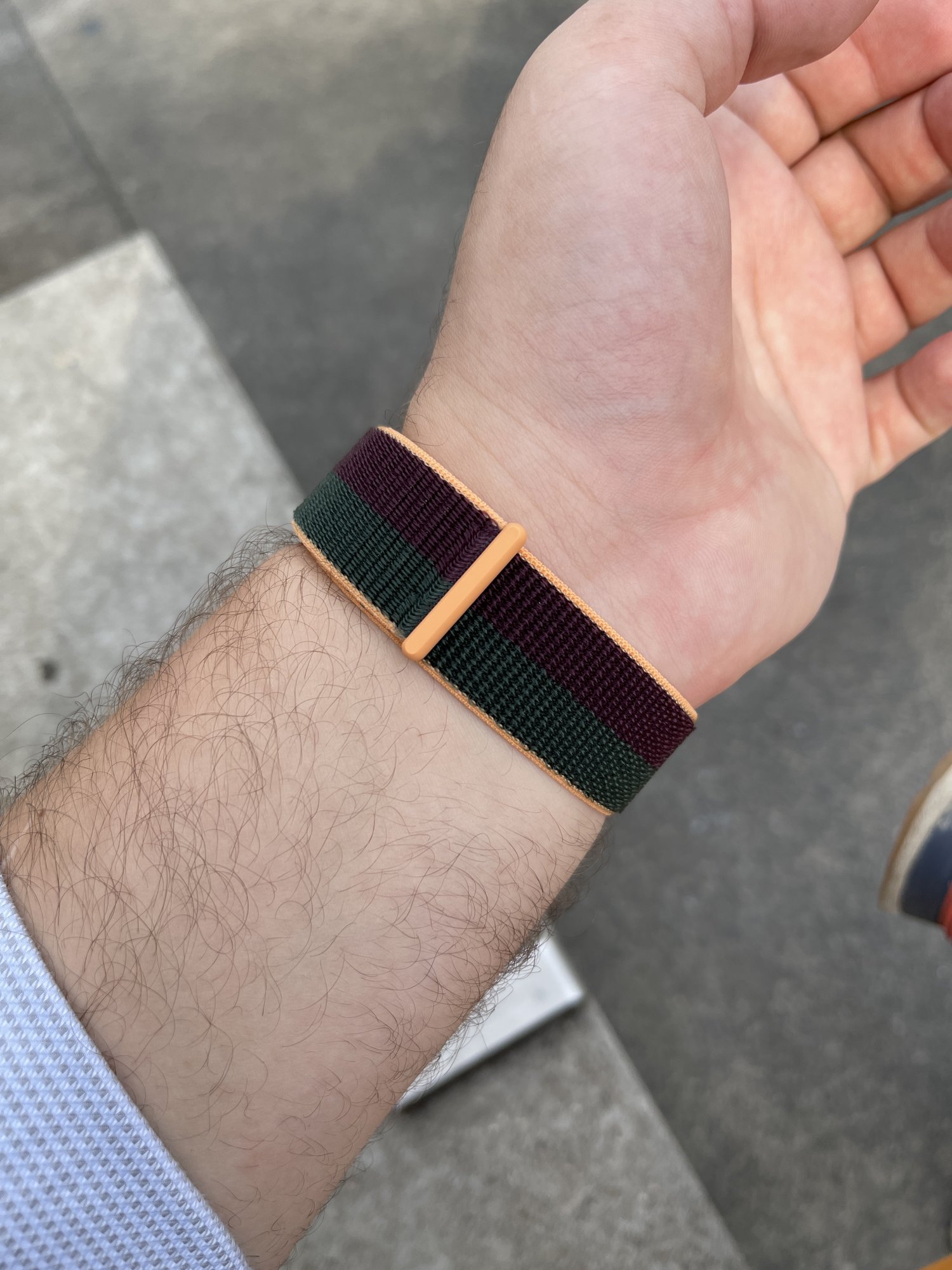 I love how soft and velvet-y this fall's sport bands are. They softly wrap your wrist like an embrace. The other good thing is that they are also way less prone to shine compared to the last two seasons' bands.