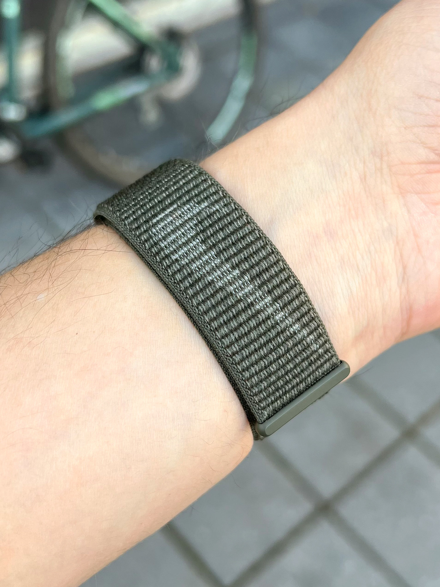 Yeah the thread pattern barely resolves through the camera’s “eyes.” And just so hard to even capture the area on wrist with watchface visible. Those full frame ones I took look better when you make them really small on your screen.Nike Cargo Khaki (Swoosh). Once again a band I bought to be my daily driver, this time it actually has been one for a few weeks! Though I'm definitely falling in love with it, might be time to look for a new daily driver soon.