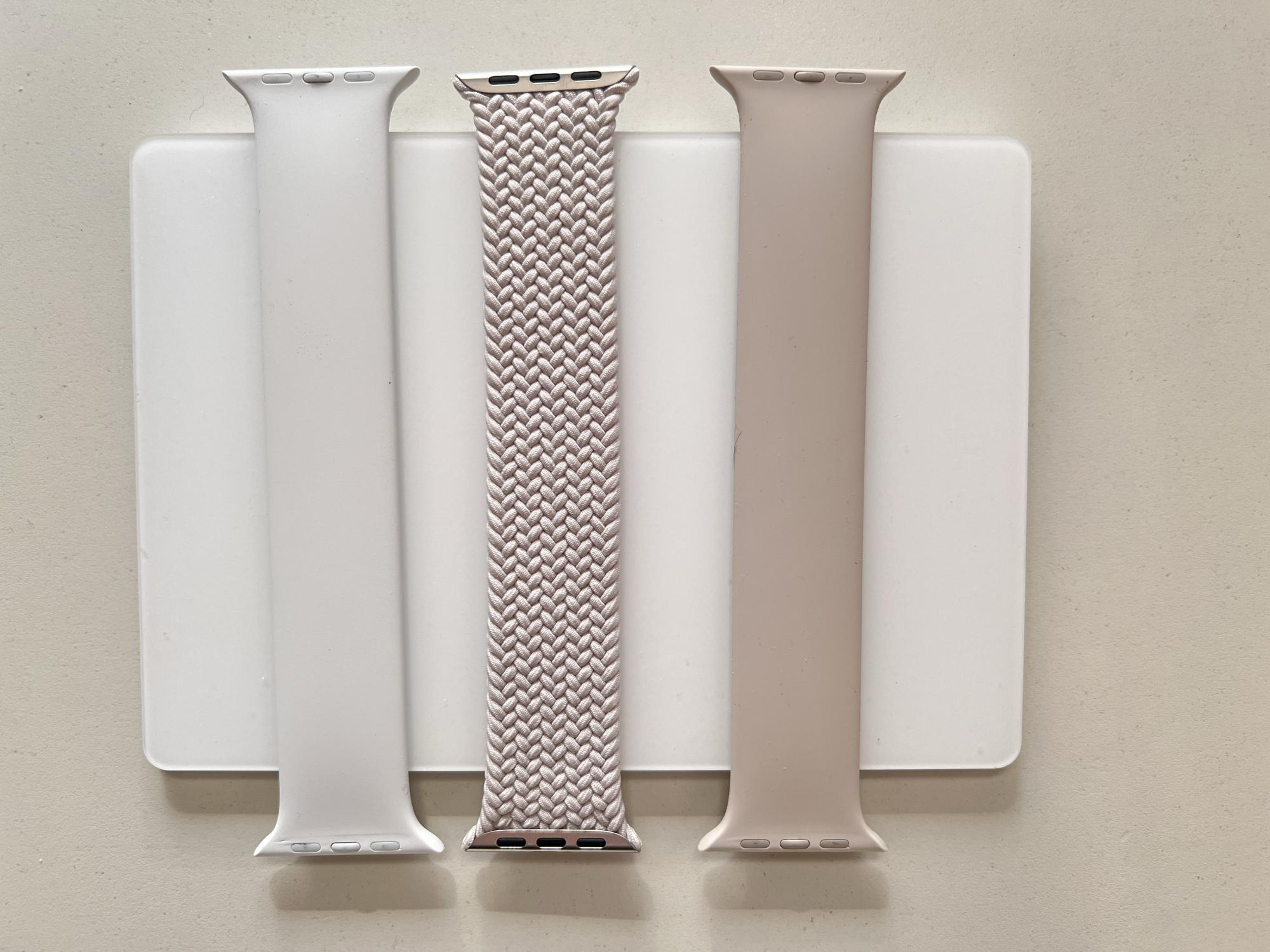 Nice! Think i'm gonna order this color for my wife. The only concern with the starlight braided is how well it will do with dirt and wear over time. She had the light green color last year for just a week and it looked dirty within days. We returned it.Starlight Braided is just as essential as expected. The first neutral Braided (discounting charcoal as I don't really like black-ish bands), I'm sure this will be in my heavy rotation. It's a little lighter than the eponimous regular Solo. Also pictured: White Solo (old version).