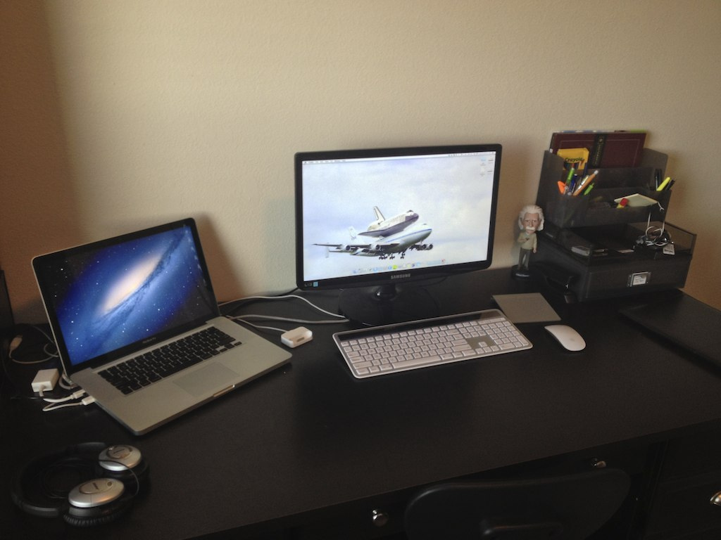 I've had a bit of a move around and added a 19" monitor that I had lying around to use as a secondary monitor for my PC and Mac. It will do until I can get two 24" LED IPS monitors to replace it and the TV.