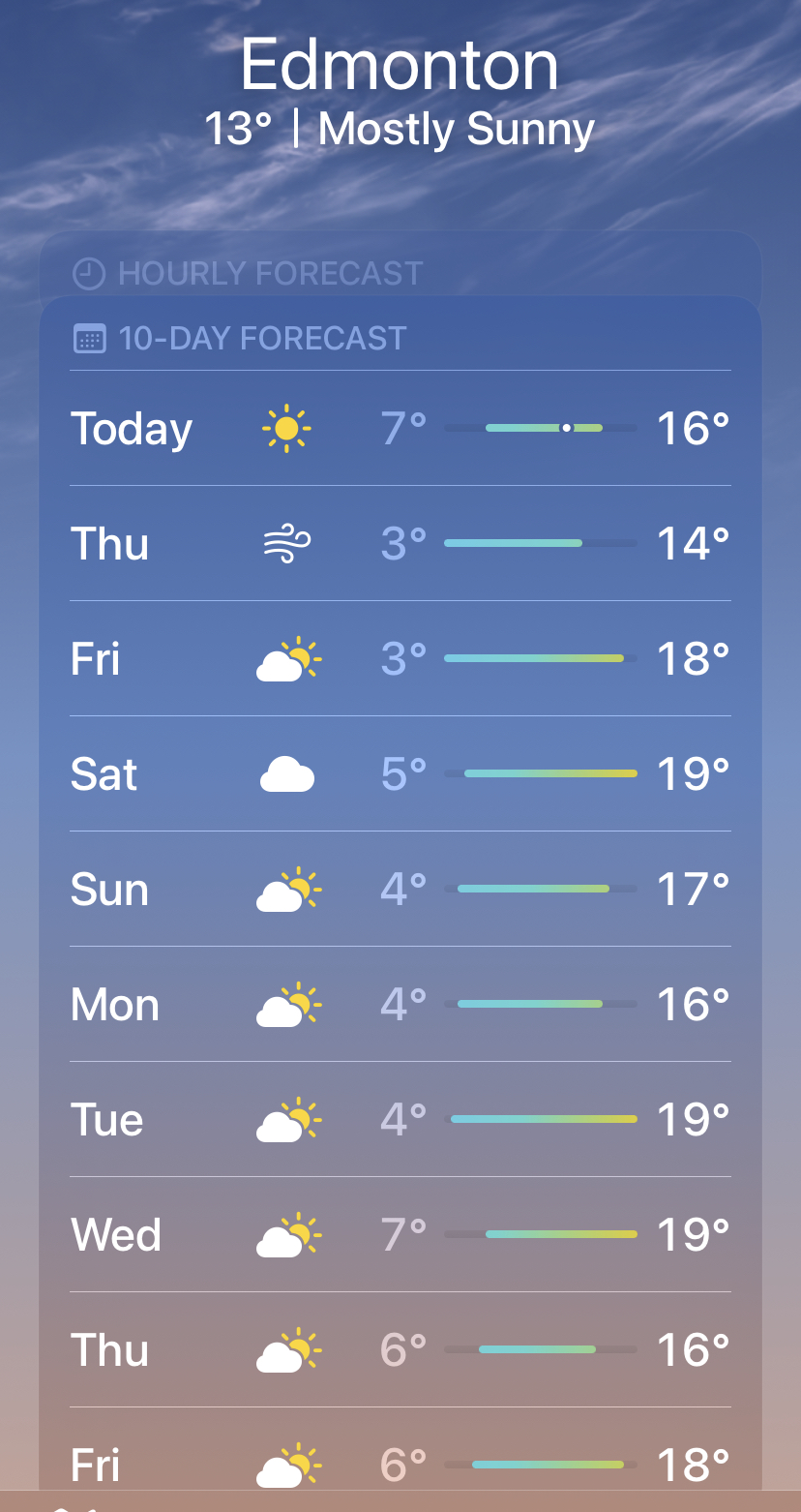 There continues to be a main view with the weather conditions on an hourly basis that you can shift through, and a new 10-day forecast view lets you know what weather you can expect in the future. The updated 10-day forecast shows expected conditions and has a bar that makes it easier to see the temperature over time at a glance.