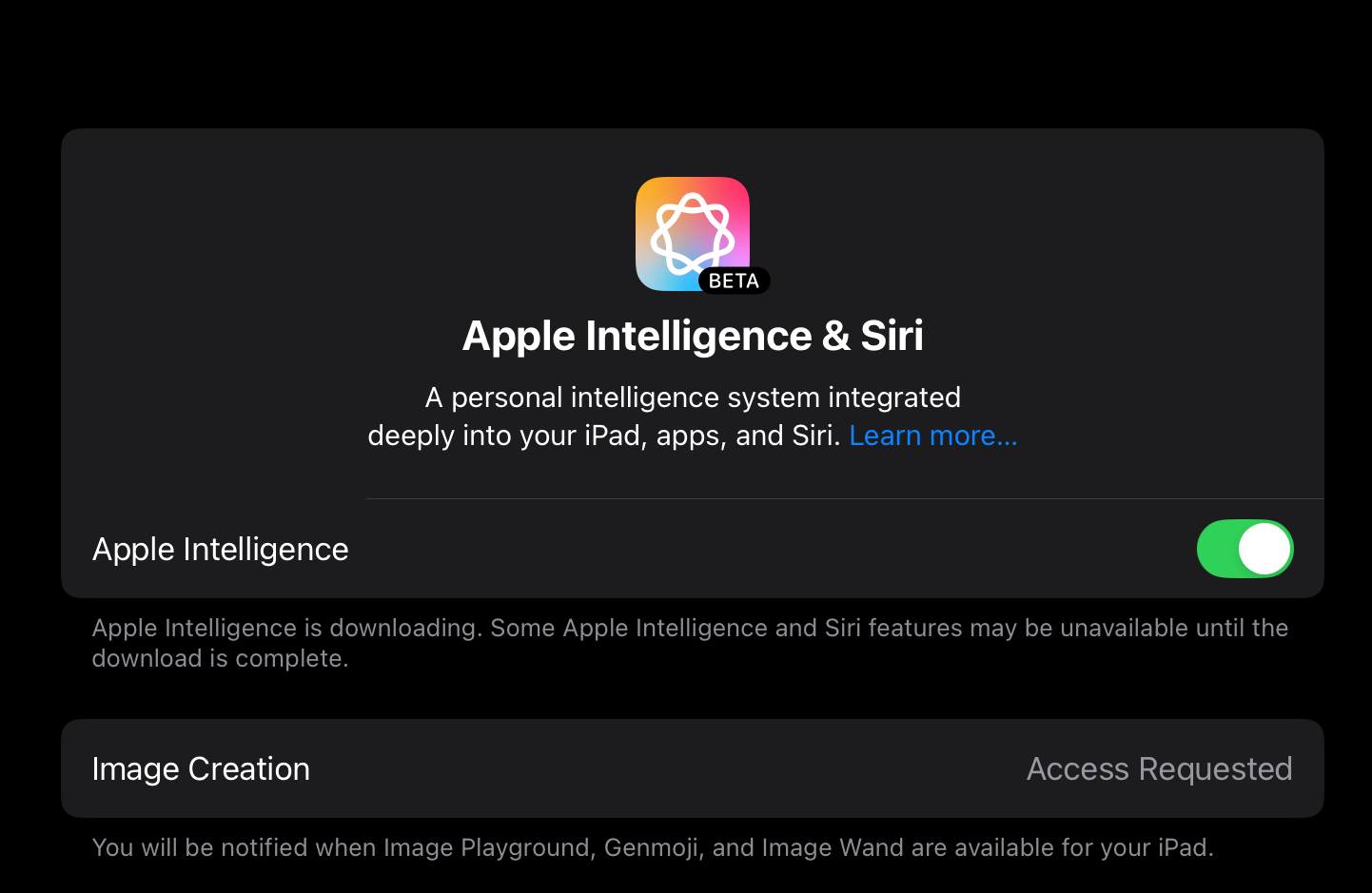 - Image Playground - There's an Image Playground app and Messages integration for creating stylized images based on prompts and images of you and your friends.