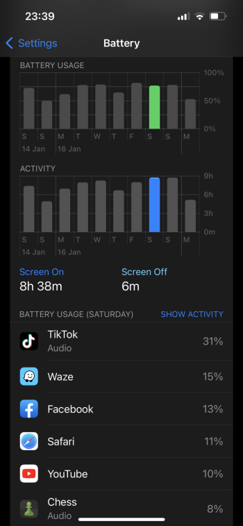 Just did a battery drain test: