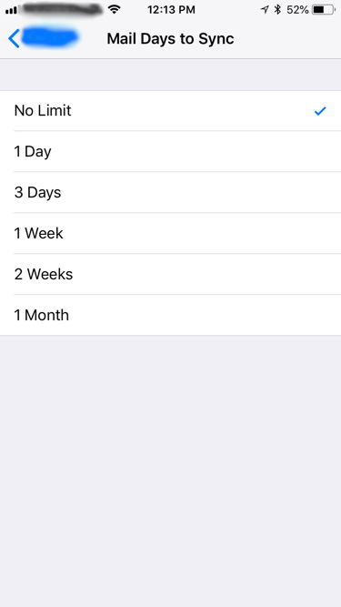 I’m using Exchange mail for my work on my IPP. When I set it up it allowed me only a max of one month sync. I’ve checked online and it says I should have a “No Limits” option but it’s not there. Any ideas why?