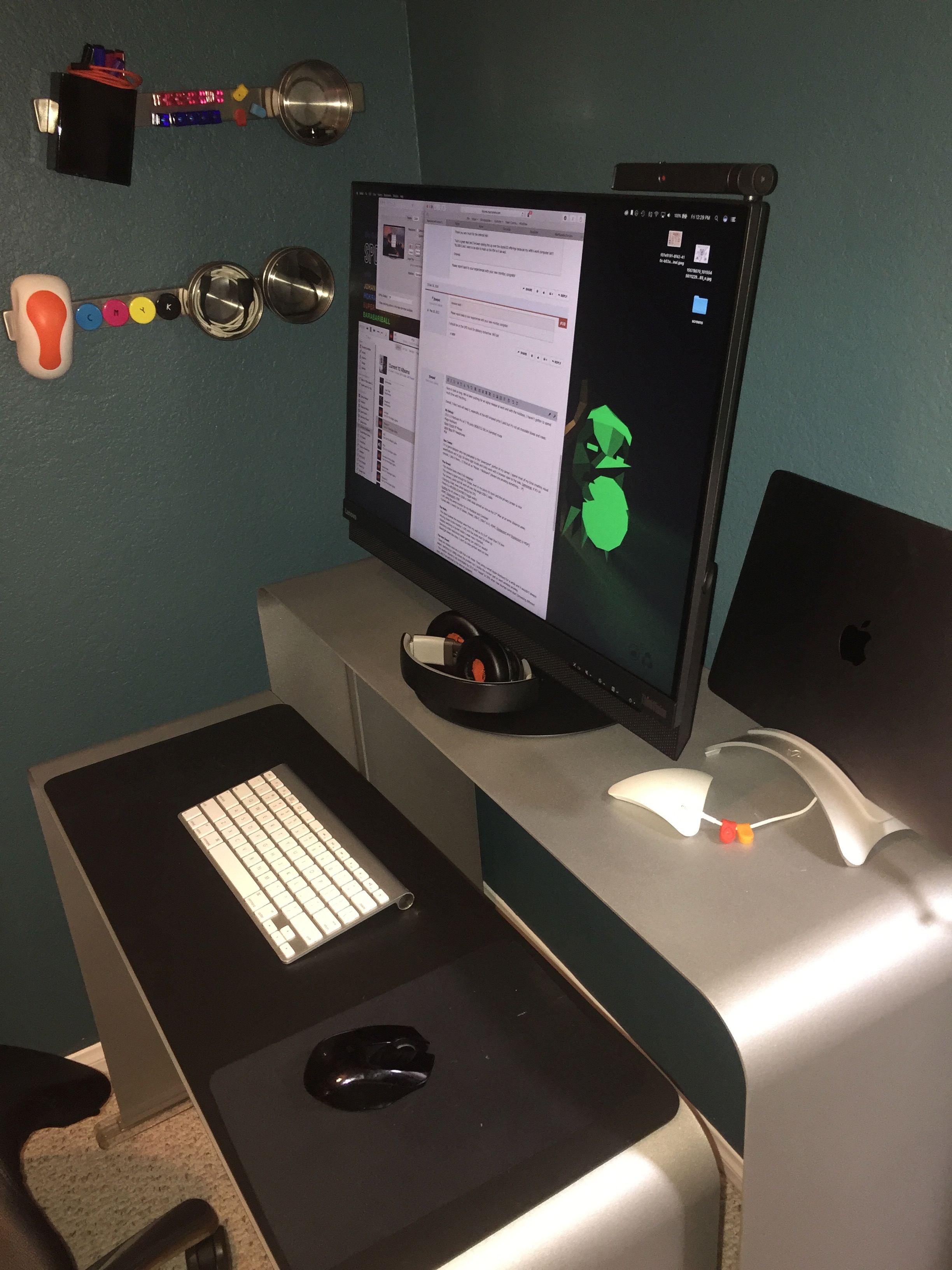 I'm a game designer who has graduated to the "powerpoint" portion of my career. I spend most of my time creating visual specifications and in Jira. I do some light Xcode and Unity work with a browser open to the side. Gamewise, if it's on console, I play it there... (I think all ya "Mouse + Keyboard" players are smoking something...