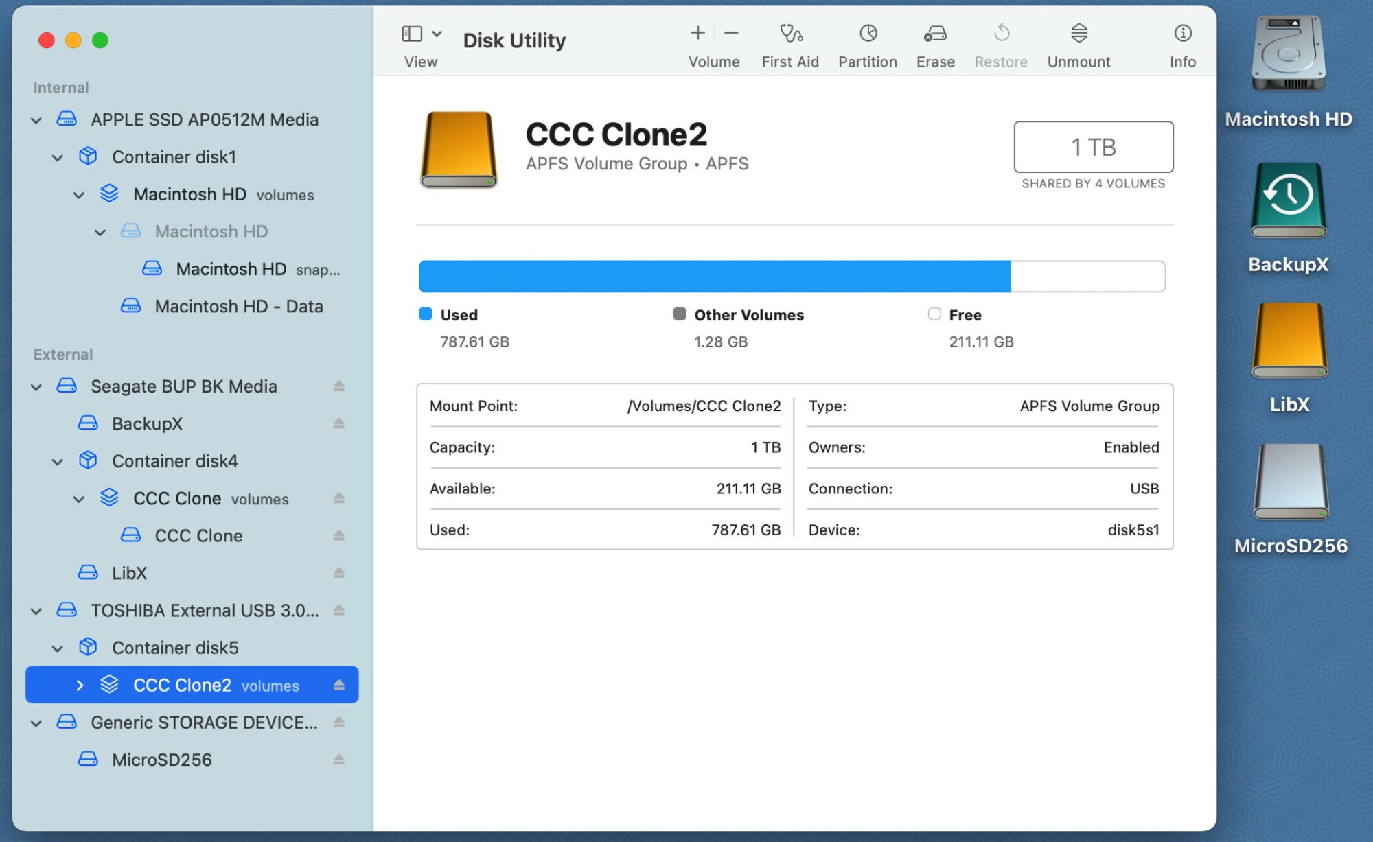 Before the switch I made two backups - one Time Machine backup and one Carbon Copy Cloner hard disk clone. Both backups are on an external hard drive with a total of 3 partitions. The CCC backup partition is APFS formatted, the other 2 partitions (one of which contains the Time Machine backup) are Mac OS Extended (Journaled) partitions.