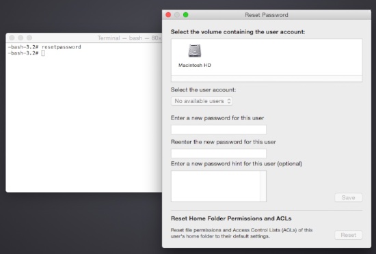Is there a command in terminal that would allow me to reset the password? Navigating through drive hierarchies is not as clean a method as a direct log in.