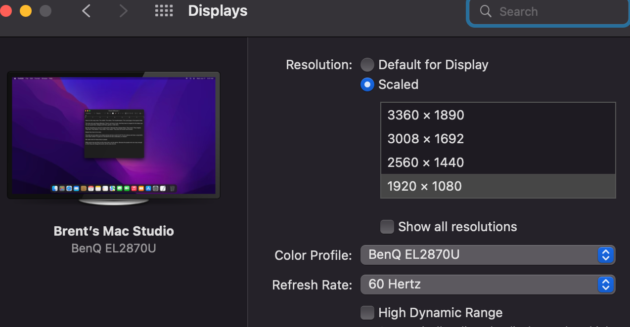 When I use the default for display option in MacOS (12.4) - it set the resolution to 1920*1080