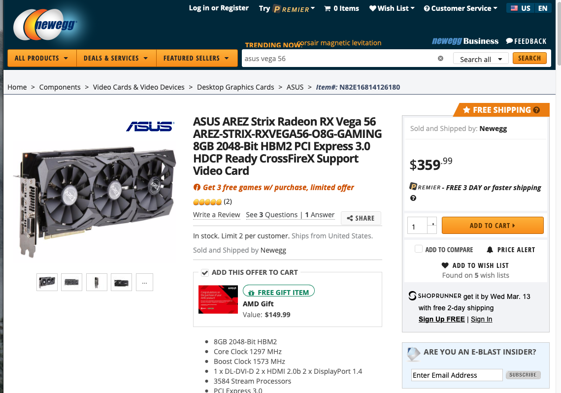 I have also looked at the ASUS AREZ Strix Radeon RX Vega 56, but right now on newegg it is going for $560.
