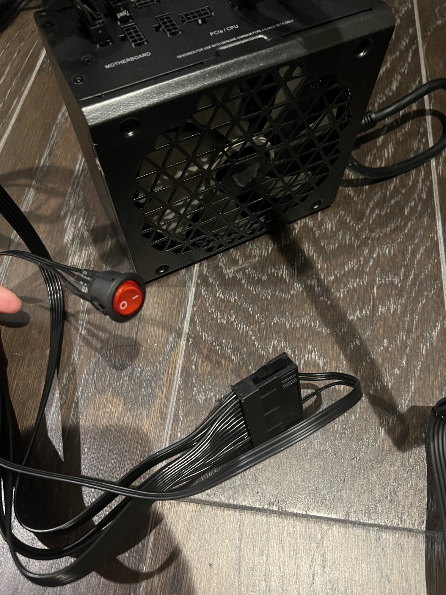 Looked like the cable you mentioned was included in the Corsair PSU package as per the attached photos. So I tried out hooking the cables up as per the attached, but when I turned on the red on/off switch, I heard one click noise, the fans turned on, then the fan stopped. I took the RTX4090 out of Mac Pro’s PCIE connection and tried turning on the red on/off switch again, but no luck.make sure its a corsair one as some have different pin outs at PSU so check the corsair chart to what cable suits your PSU part number.
