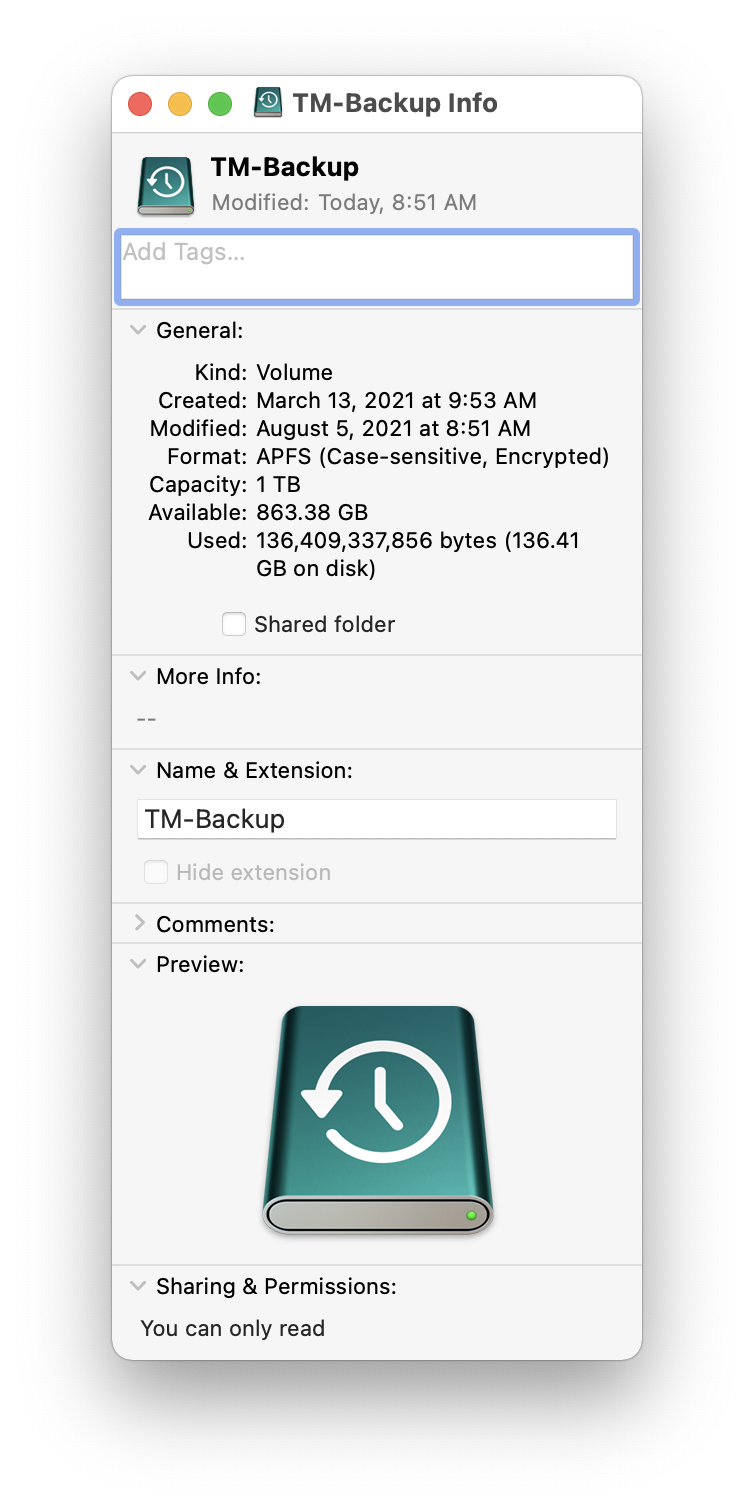 I got new external SSD and want to use it for Time Machine backups, but it switching to "read only" after configuring the Time Machine.