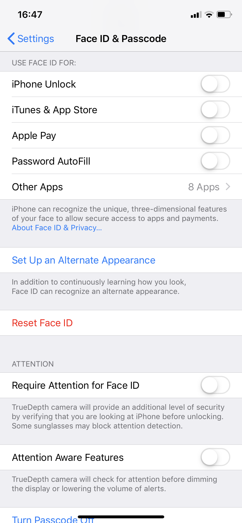 I like Face ID for unlocking the phone (I actually need it), but I can live with Attention Aware turned off.