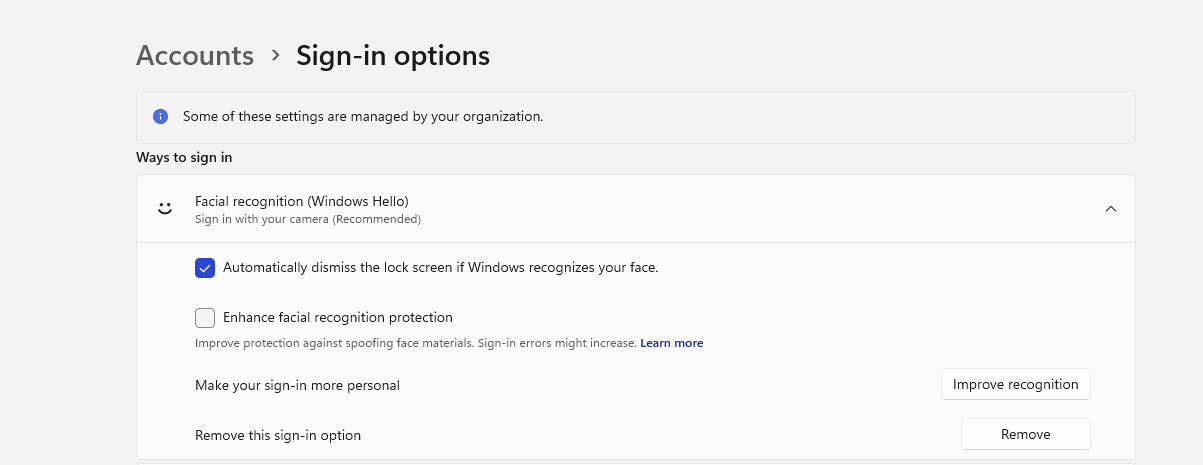 Yeah I would assume it's a group policy since I don't have to do anything. It just auto logs in. Works really well to. Can't think the last time I had to use my pin or password.Well not necessarily swipe, works by hitting a key too. Either way it asks me to dismiss the lock screen before letting me to my desktop.