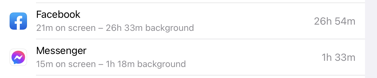 Facebook app is using huge background time. The window is last 10 days iPad and 24h iPhone