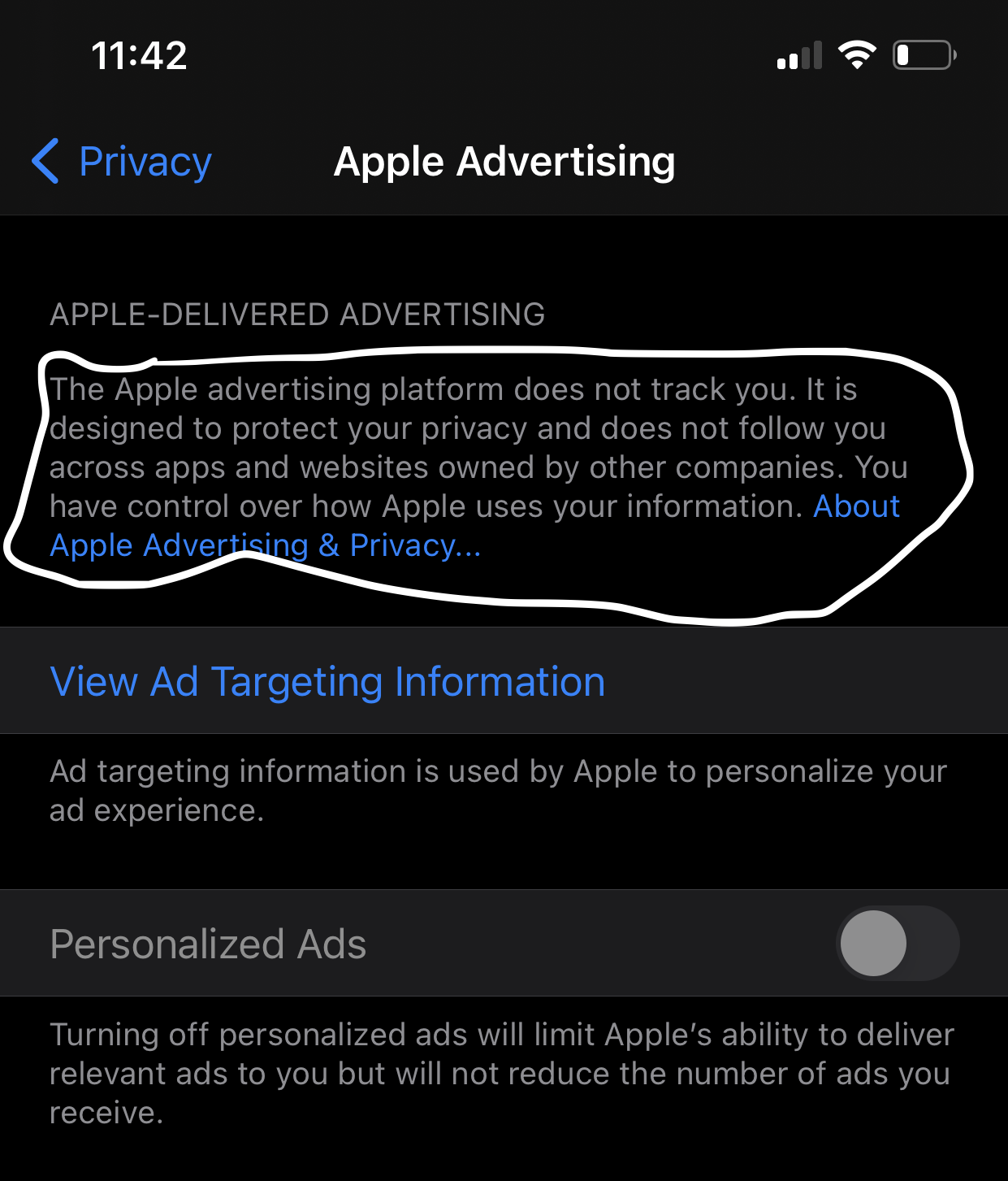 Yeah, it's not like Apple explains in the iOS settings that they don't track you for ads.