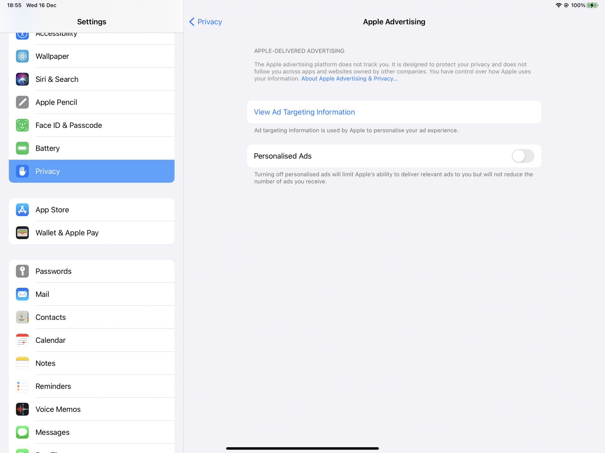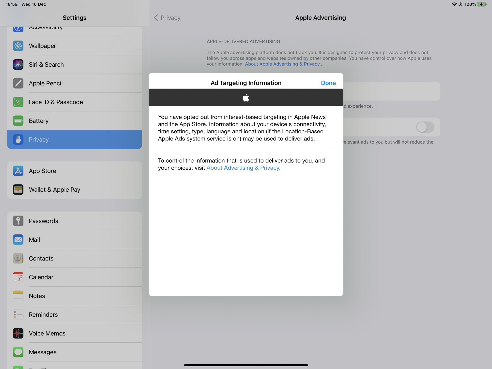 You can disable Personalized Ads on your iOS or iPadOS device by going to Settings > Privacy > Apple Advertising and tapping to turn off Personalized Ads. On Mac, go to System Preferences > Security & Privacy > Privacy, select Apple Advertising, and deselect Personalized Ads.