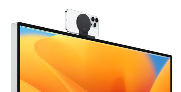 Belkin iPhone Mount with MagSafe for Mac desktops and displays utilizes the new Continuity Camera features in the latest version of macOS Ventura. Buy online now at apple.com.