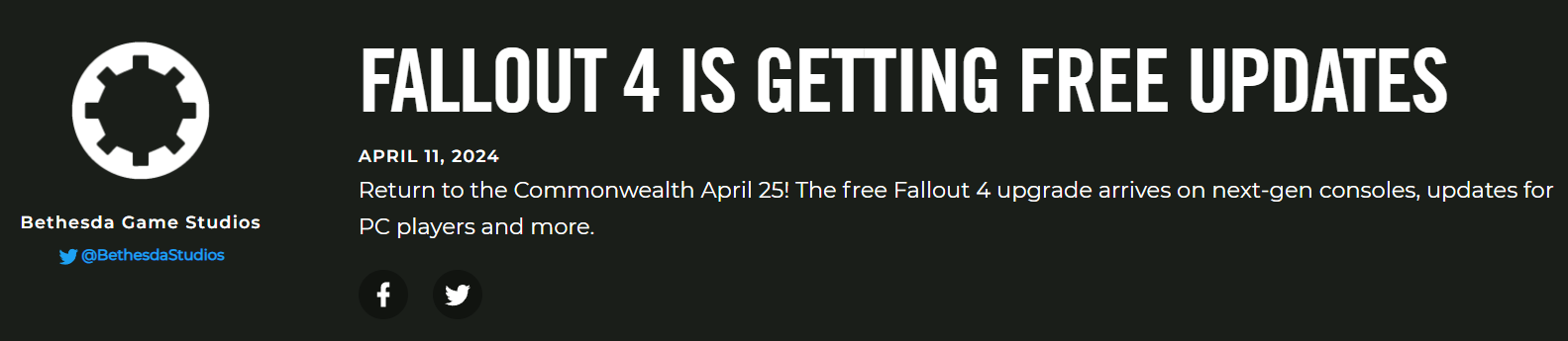 Carter concluded the announcement with a reference to that classic Fallout line: “War. War never changes.” "As soon as we've fixed it, it'll drop," Carter said, "but yeah, Bethesda. Bethesda never changes."